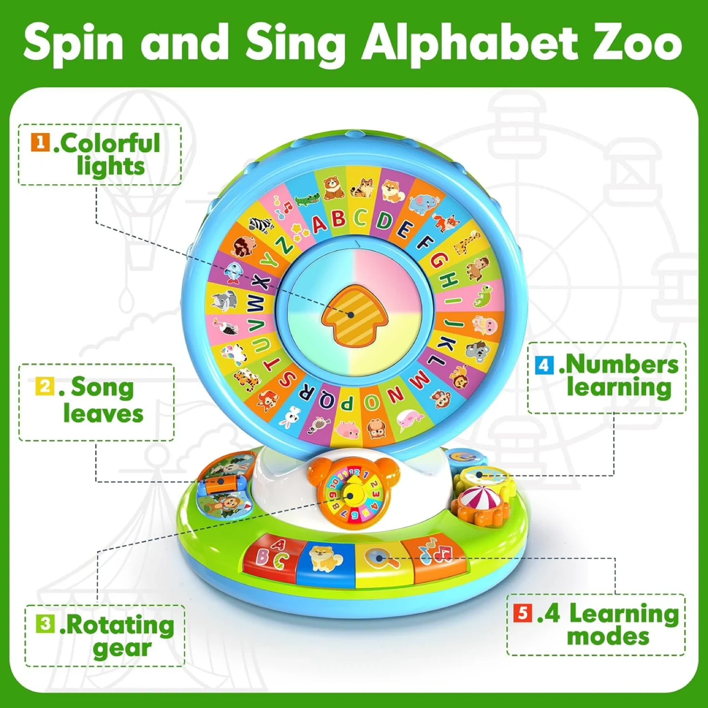 Tested working. Selling a VTech Spin and Sing Alphabet Zoo toy! It features colorful lights, songs, a rotating gear, numbers learning, and 4 learning modes. It's a fun way for kids to learn the alphabet and more
