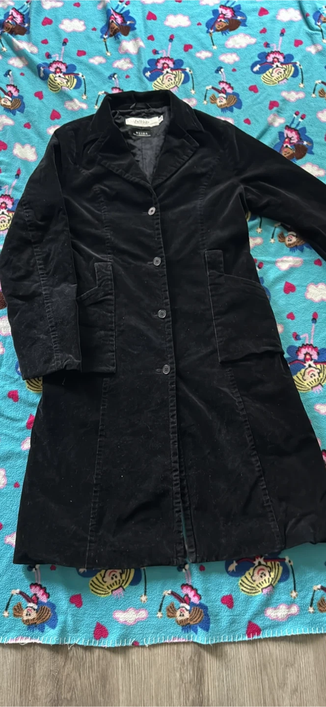 10Selling a stylish black velvet coat from InWear! It's a size 10 and has a high-tech thermo insulation. The model is Meida. Perfect for adding a touch of elegance to your wardrobe