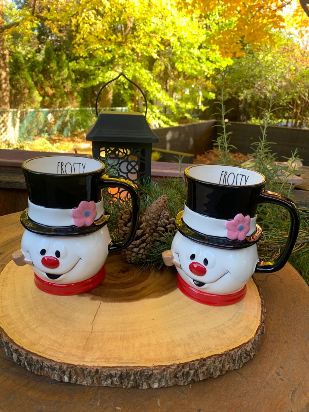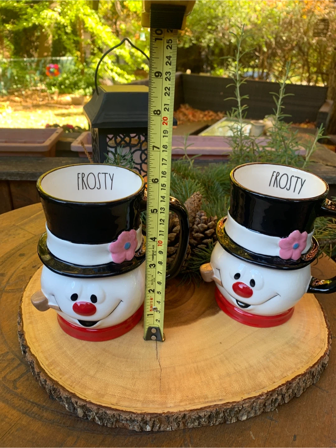 697Super cute Frosty the Snowman mugs from Rae Dunn's Artisan Snowman Collection! They are in pristine condition with no chips or cracks and look like they were never used. They are dishwasher safe but may get hot in the microwave, so be careful. Perfect for the holidays or any time you want to feel festive and would be great for older kids with hot chocolate! These would make a great gift idea as well! Cash only please. Props not included.
