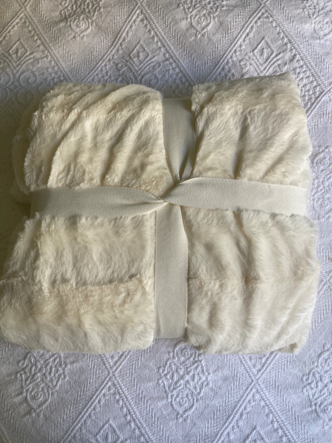 Selling a brand new Indigo Cozy Cabin Faux Fur Throw in Ivory! It's super soft and cozy, perfect for snuggling up on the couch.