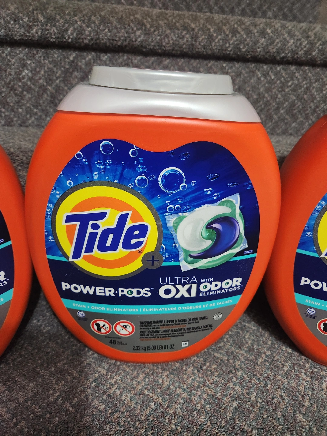 39Selling a container of Tide Power Pods Ultra Oxi Odor Eliminators. This container includes 48 pods to help with stain and odour elimination during your laundry routine Buy All 3 for $50 Deal or $20 each