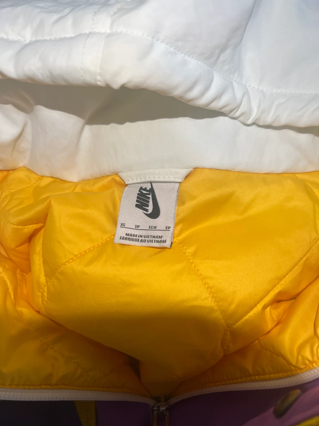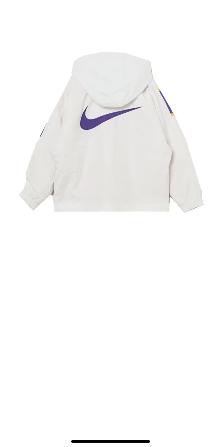 Selling a Nike x Ambush Lakers jacket! The jacket is white with purple and gold accents. It has the Lakers logo on the front and the Nike swoosh on the back, with Ambush branding on the sleeve. Great for any Lakers fan! its price was 350