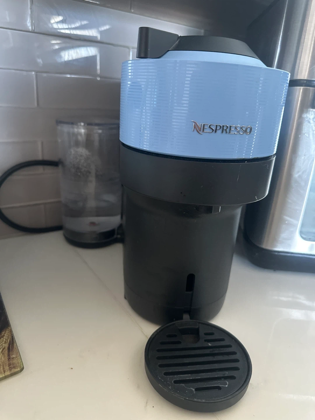 198Selling a Nespresso Vertuo Pop coffee machine! It's in great shape and ready to make delicious coffee. It's a nice light blue colour, and it fits nicely on the counter. Bought a year ago. I still have the box.