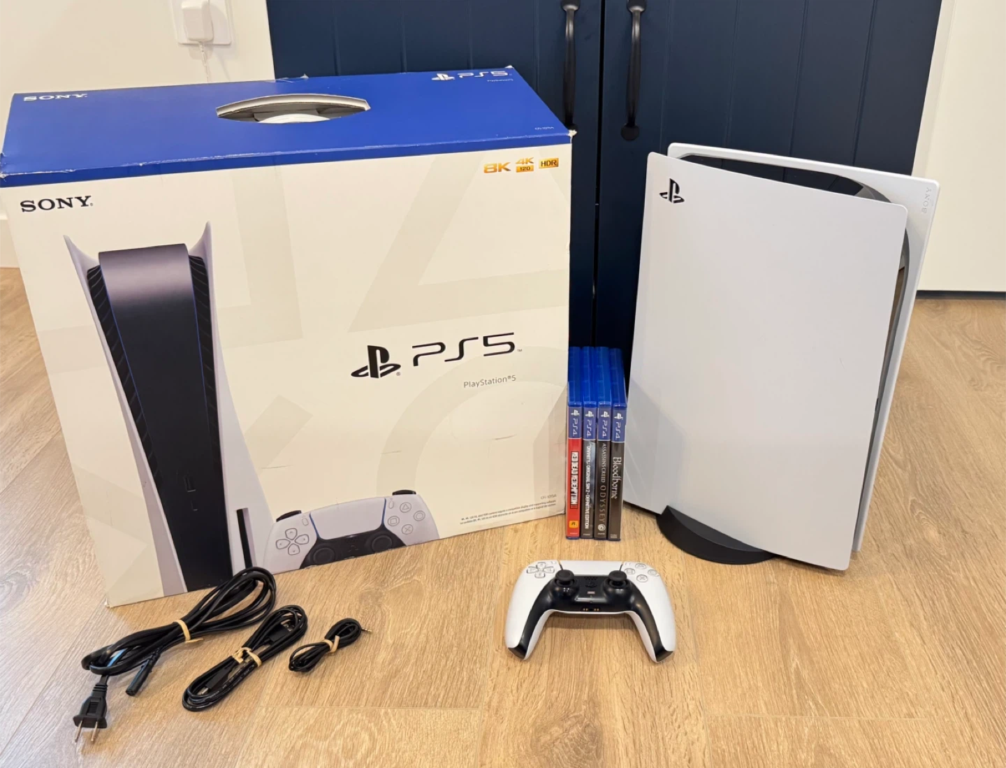 Selling PS5 system, includes one controller, all cords, posted games and original packaging. Purchased in 2020, disk reader included, 825 GB