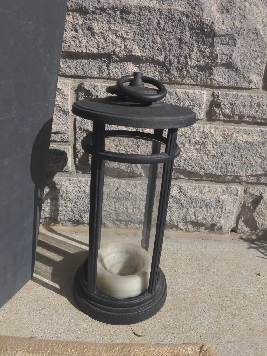 Black Metal & Glass Candle Lantern