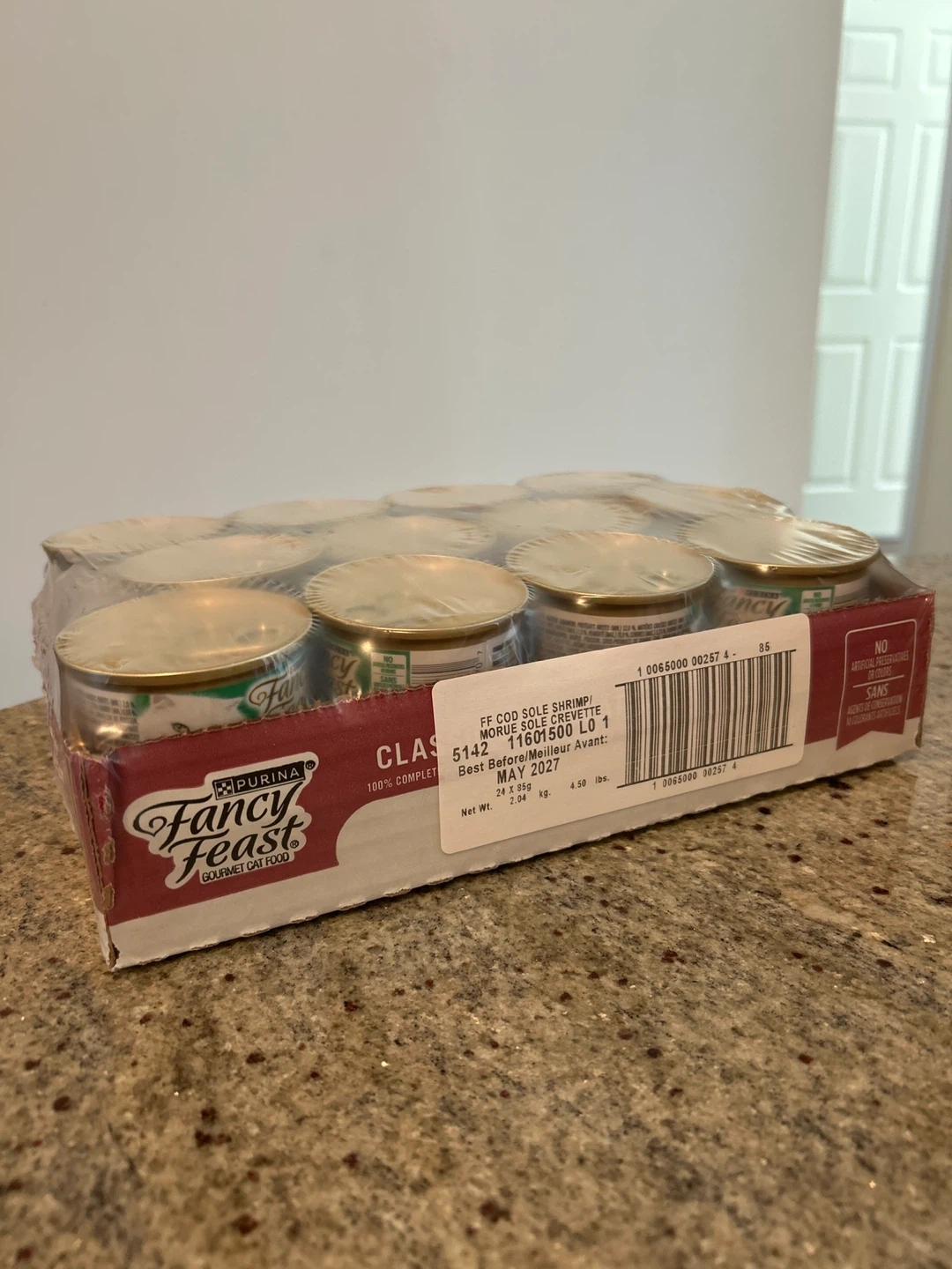 Fancy feast cod sole and shrimp pate, best before May 2027