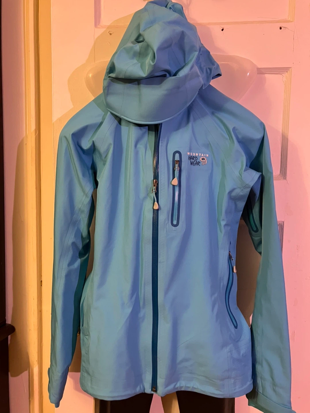 Selling a Mountain Hardwear women's jacket in size medium. It's a light blue colour and in great condition! Perfect for layering or wearing on its own during milder weather.