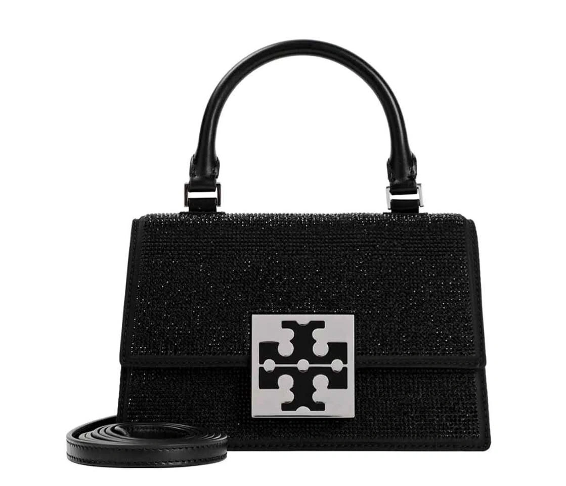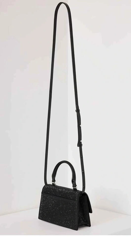 Allover embellished rhinestones. Length: 7.75in / 20cm, Height: 4.75in / 12cm, Handle drop: 3.5in / 9cm, Strap drop: 24in / 61cm, Depth: 2.75in / 7cm. Card slots at interior. Optional, adjustable strap. Leather lining. Trend Embellished Mini Top-Handle Bag.
