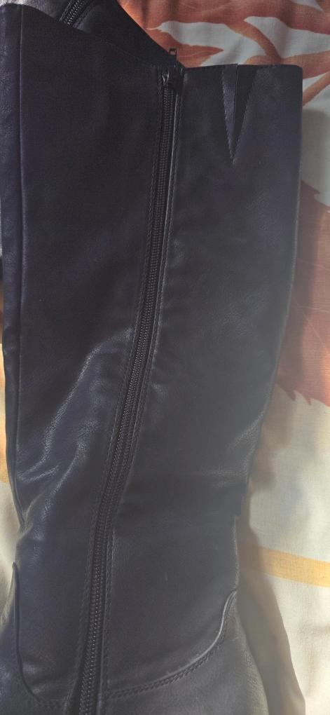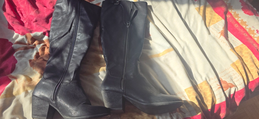 133Selling a pair of black knee-high boots in size 10. They have a zipper and a block heel. Great for fall and winter!