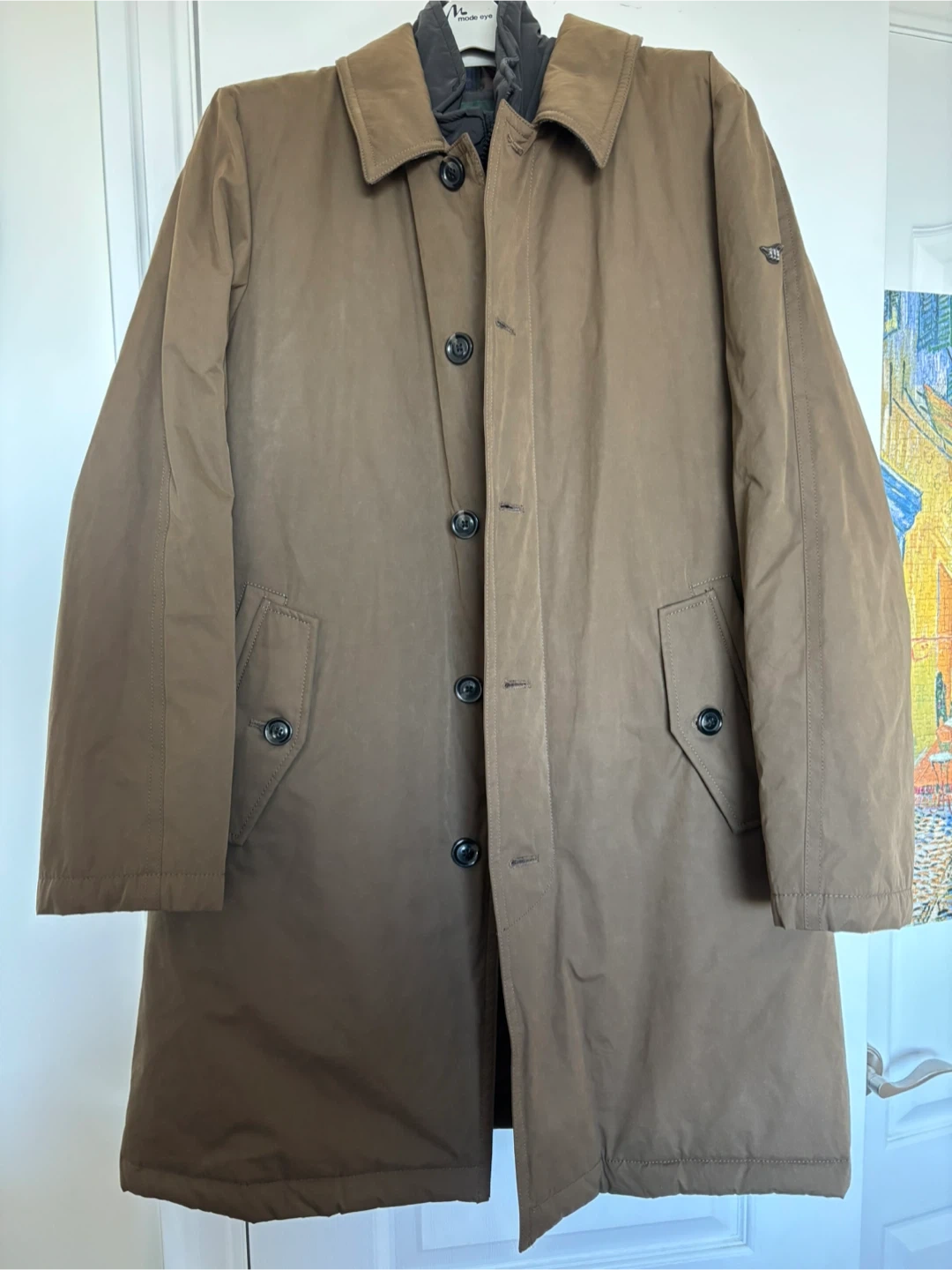 56Here's a stylish brown overcoat from Henry Cotton’s! It's in great condition and ready to keep you warm. The material is durable and the design is timeless, making it a versatile addition to your wardrobe