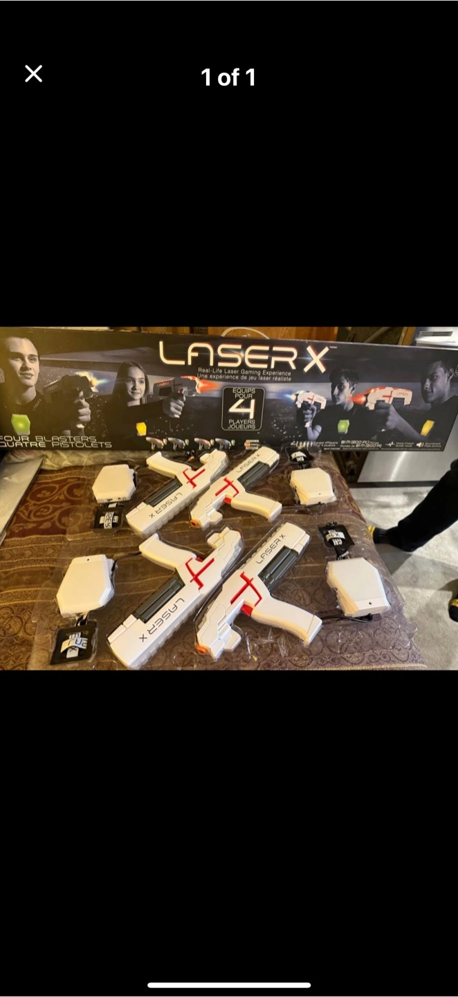 Laser X - 4 player with 4 blasters and receivers. Bought as a Xmas gift last year, kids used it once! 1 blaster never used it- like new condition.