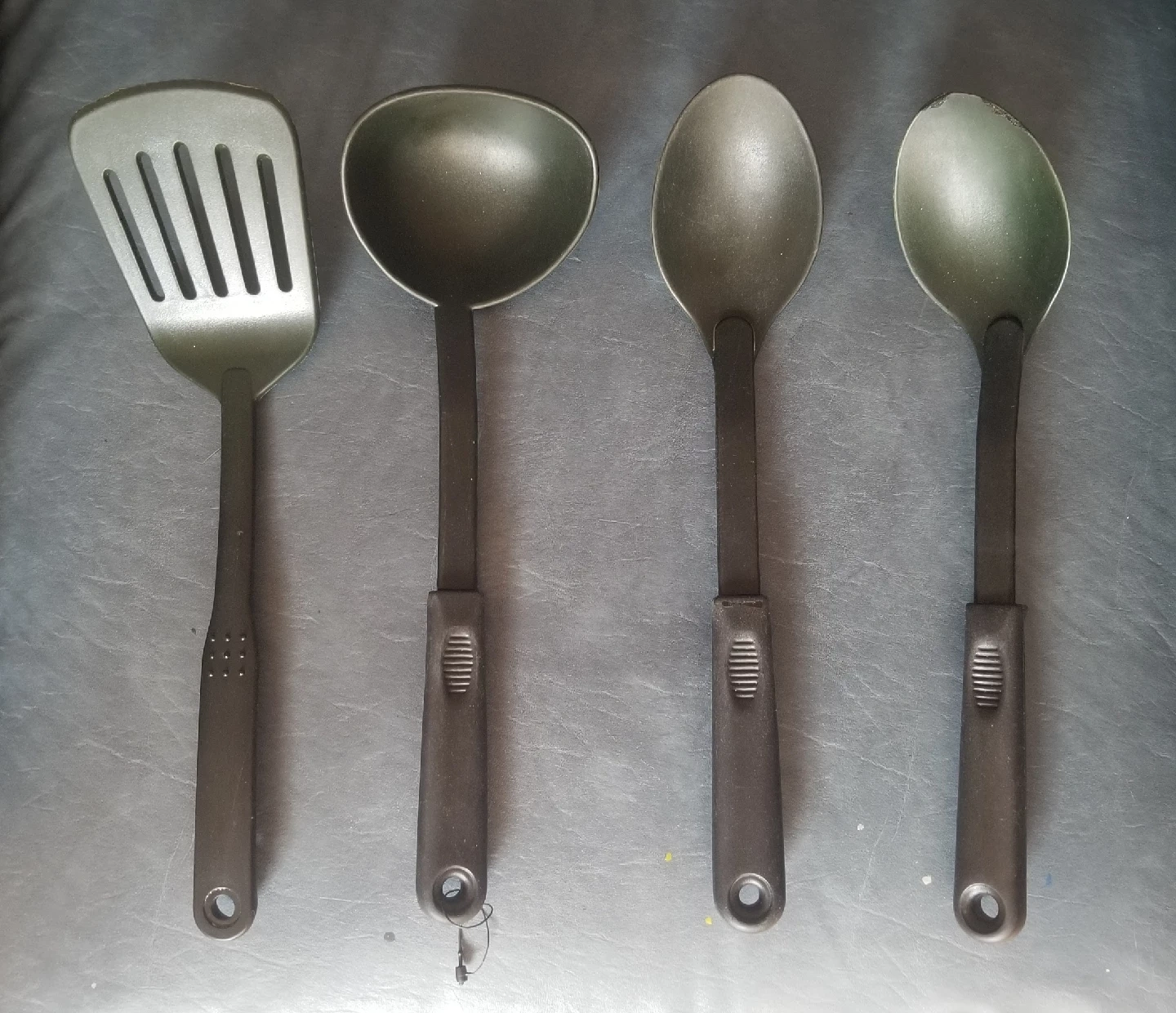 202Irving away a set of kitchen utensils! Includes a spatula, ladle, and two spoons. They're in good used condition and ready for a new home. I'll offer a bundle discount, so please check other items too. Moving Sale!