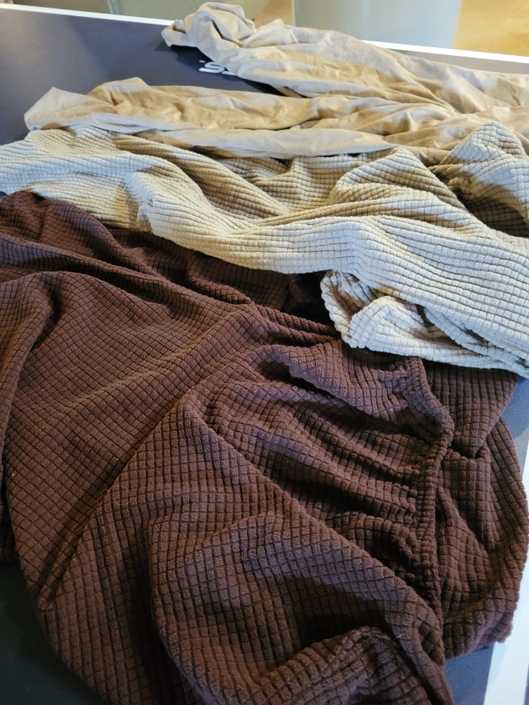 Giving away these dining chair covers from H. Versailtex! They come in 1 taupe waffle 2 chocolate brown waffle and 2 tape micro Suede . $20 for all 5 or $5 each.