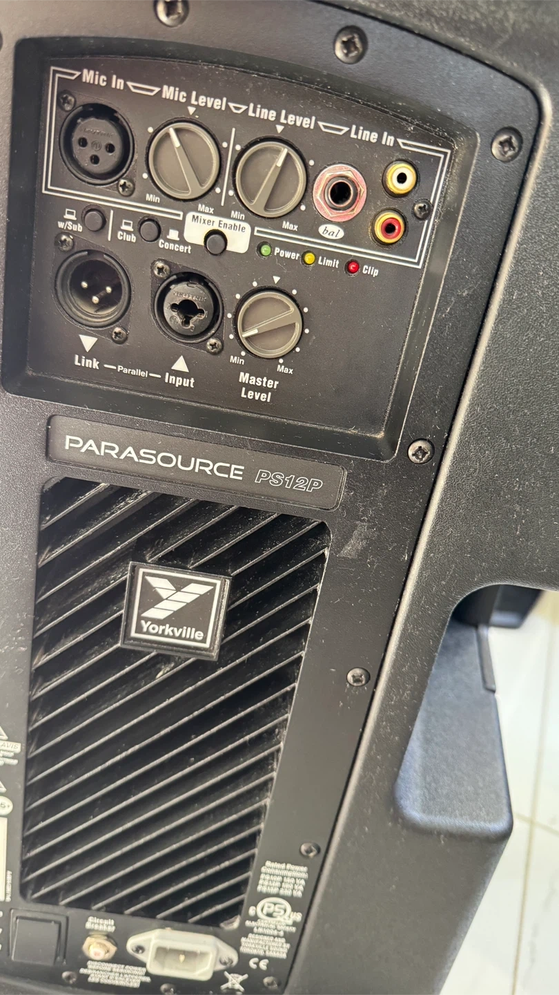 Selling a pair of Yorkville Parasource PS12P powered speakers. These units have mic and line level inputs with master level controls. They're suitable for live sound reinforcement or installed applications.