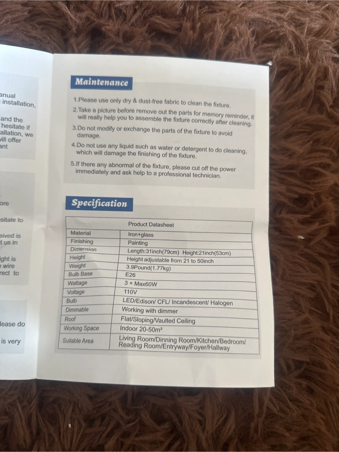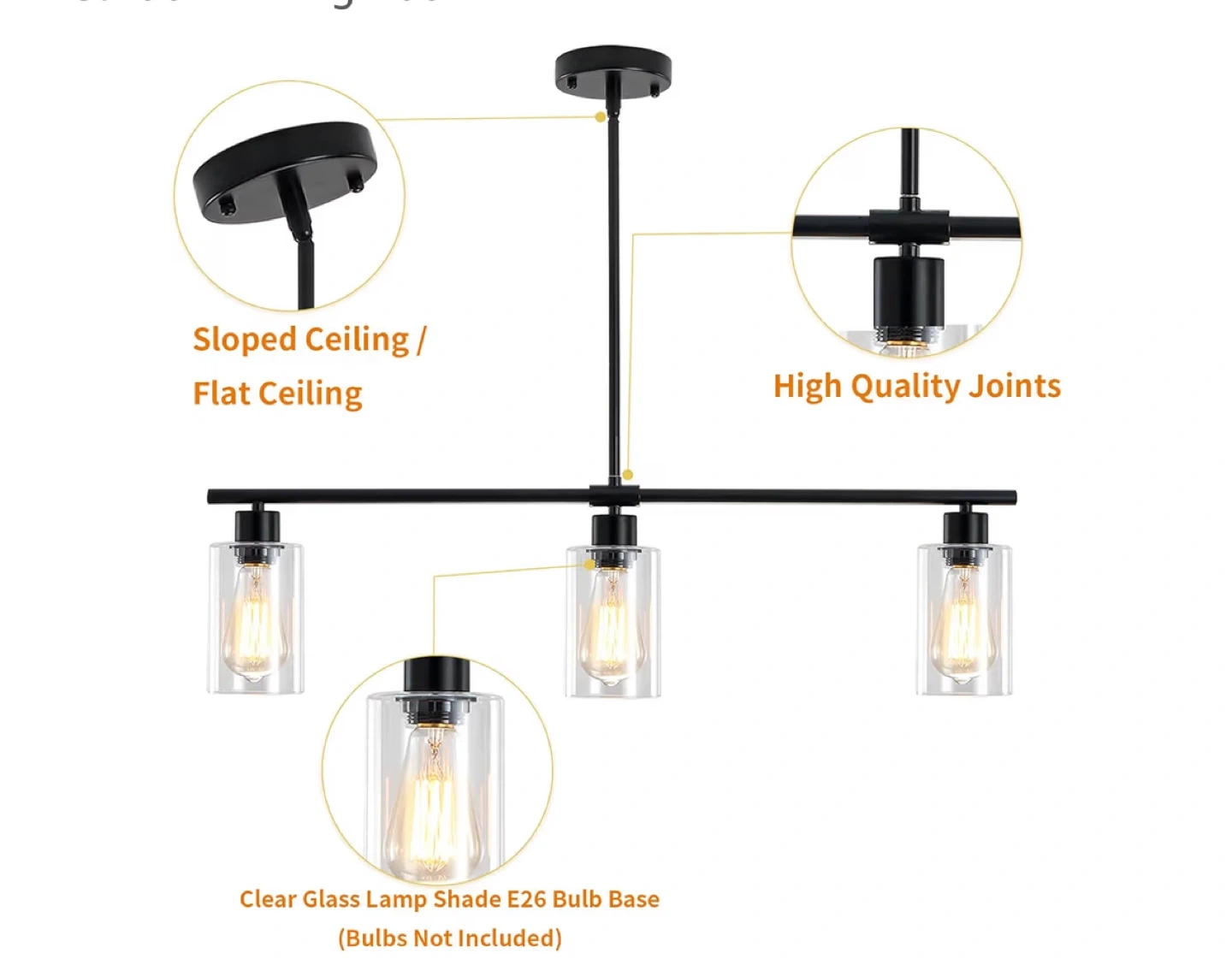 This is a 3-light linear island pendant lighting fixture. It features an iron and glass construction with a painted finish. The dimensions are approximately 31 inches in length and 21 inches in height, adjustable from 21 to 50 inches. It weighs about 3.9 pounds and uses E26 bulbs, with a maximum wattage of 3 x 60W at 110V. Suitable for indoor spaces of 20-50 square meters, such as living rooms, dining rooms, entryways, and hallways