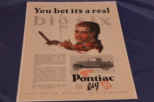 Buy & Sell1929 Pontiac Big Six Original Ad1929 Pontiac Big Six Original Ad$6This is an original Ad for the 1929 Pontiac Big Six in excellent shape. More Info: ArtWHERE TO MEETCheck LocationView MapSELLERDaleCrossfield100 reviews0 chats·0 favorites·0 views