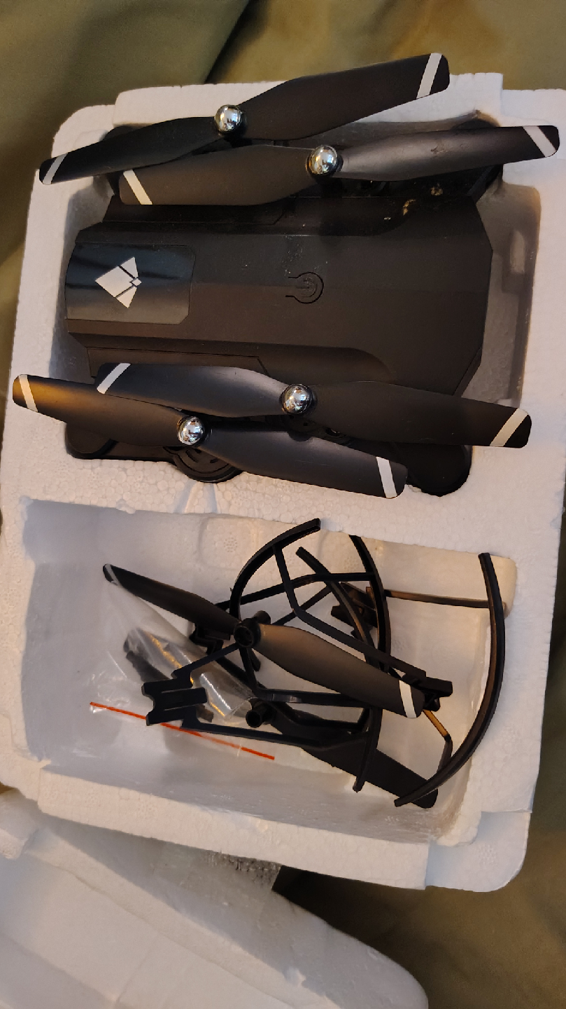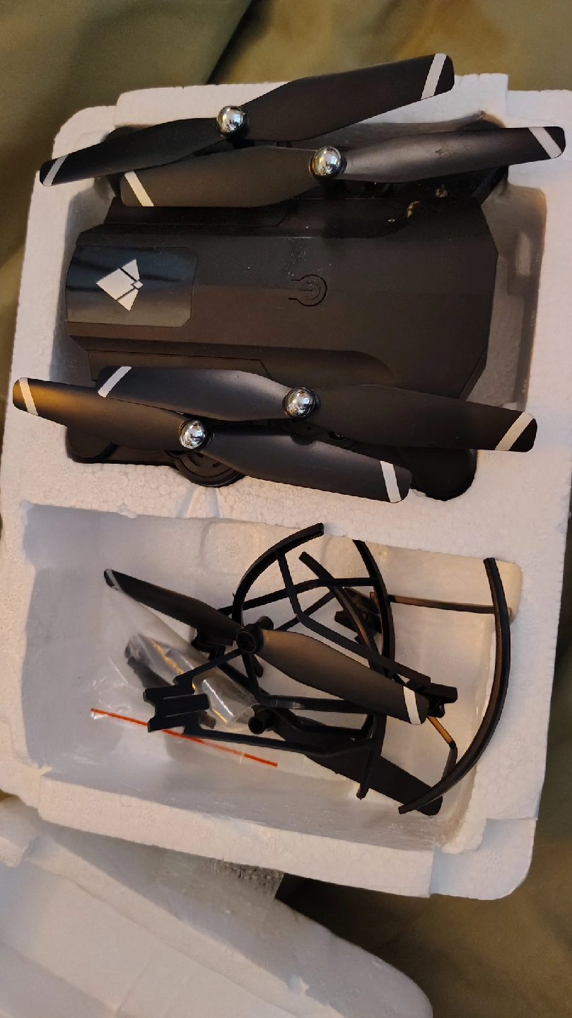 Selling a black drone that comes with extra propellers. It appears to be in good condition and includes the original box. Perfect for beginners or experienced drone enthusiasts!