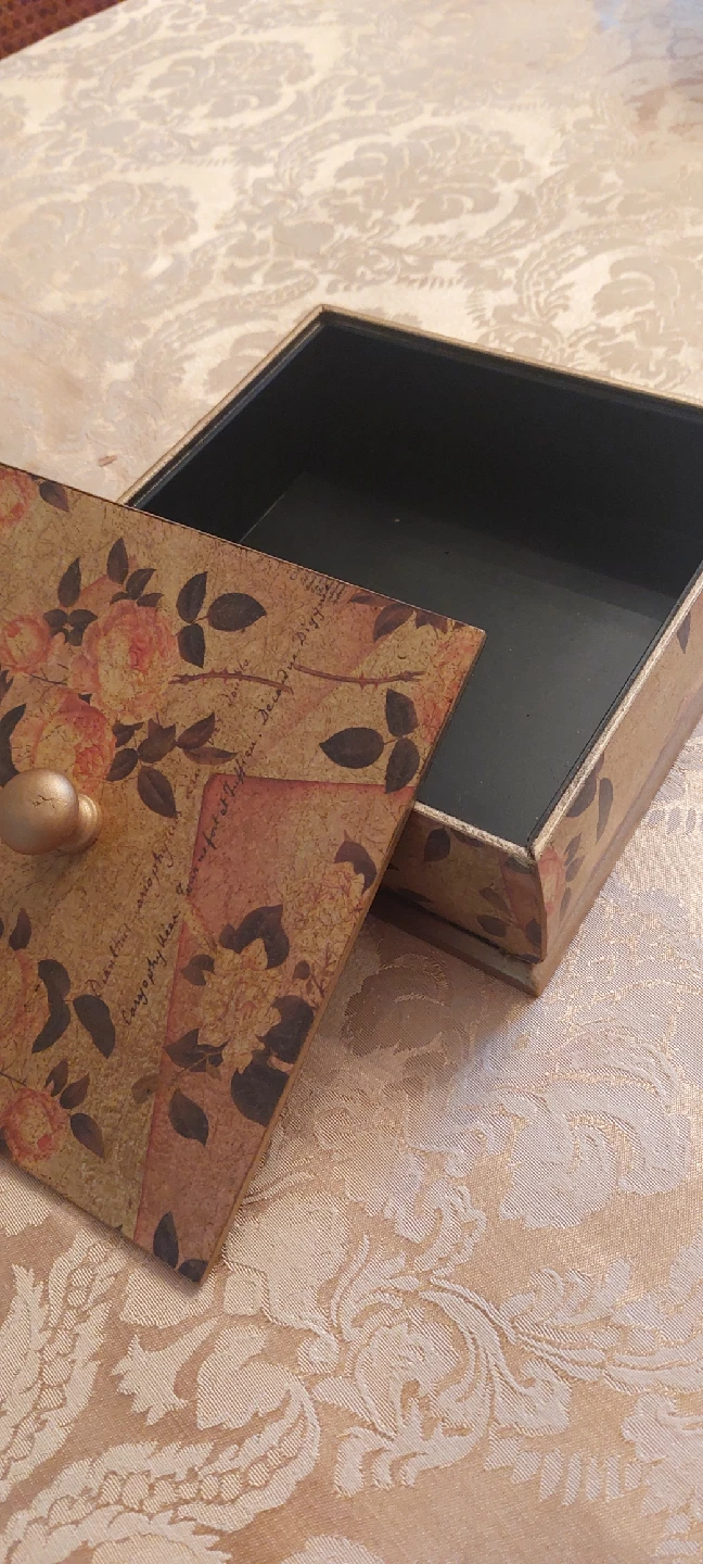 Selling a decorative box with a lovely floral design. It's perfect for storing small items, jewelry, or adding a touch of vintage charm to your decor. The box has a knob on top for easy opening. It is new in box and looking for a new home.