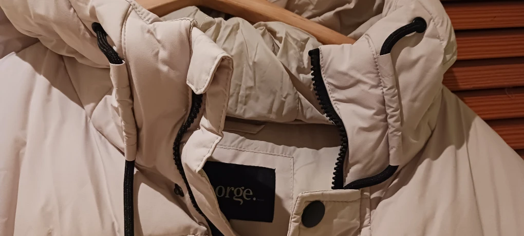Here's a brand new cozy puffer jacket from George! It's a size 2XL and has a hood. Perfect for staying warm on chilly days