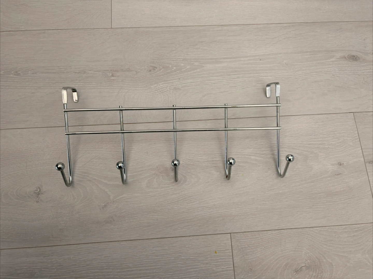 Keep your space tidy with this handy over-the-door hook rack! It's perfect for hanging coats, towels, or accessories without taking up valuable closet space. The chrome finish gives it a sleek, modern look that will complement any decor