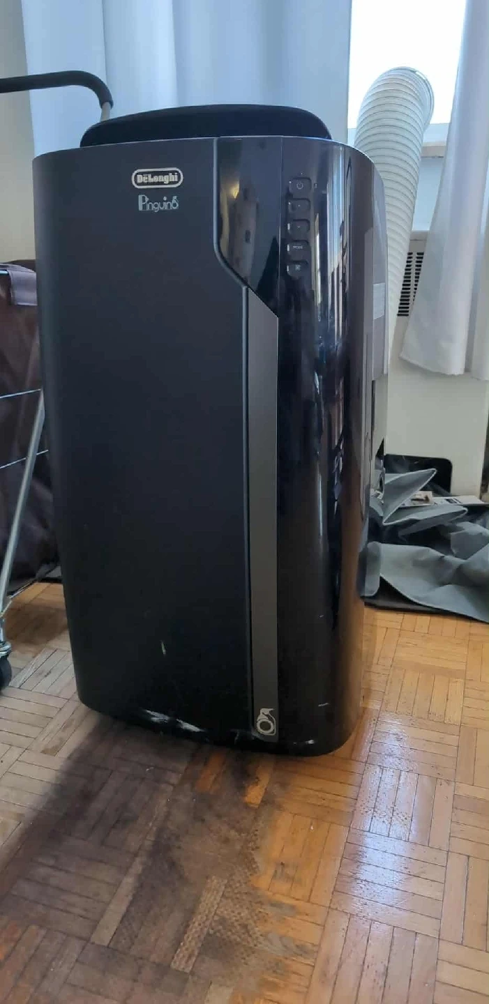 Selling a DeLonghi Pinguino portable air conditioner. It's in great condition and ready to keep you cool this summer! Perfect for small spaces, it's easy to move around and set up. This is a 14,000 BTU unit which can cool rooms up to 700 square feet. It has a remote control and also functions as a dehumidifier. This is a whisper quiet unit.