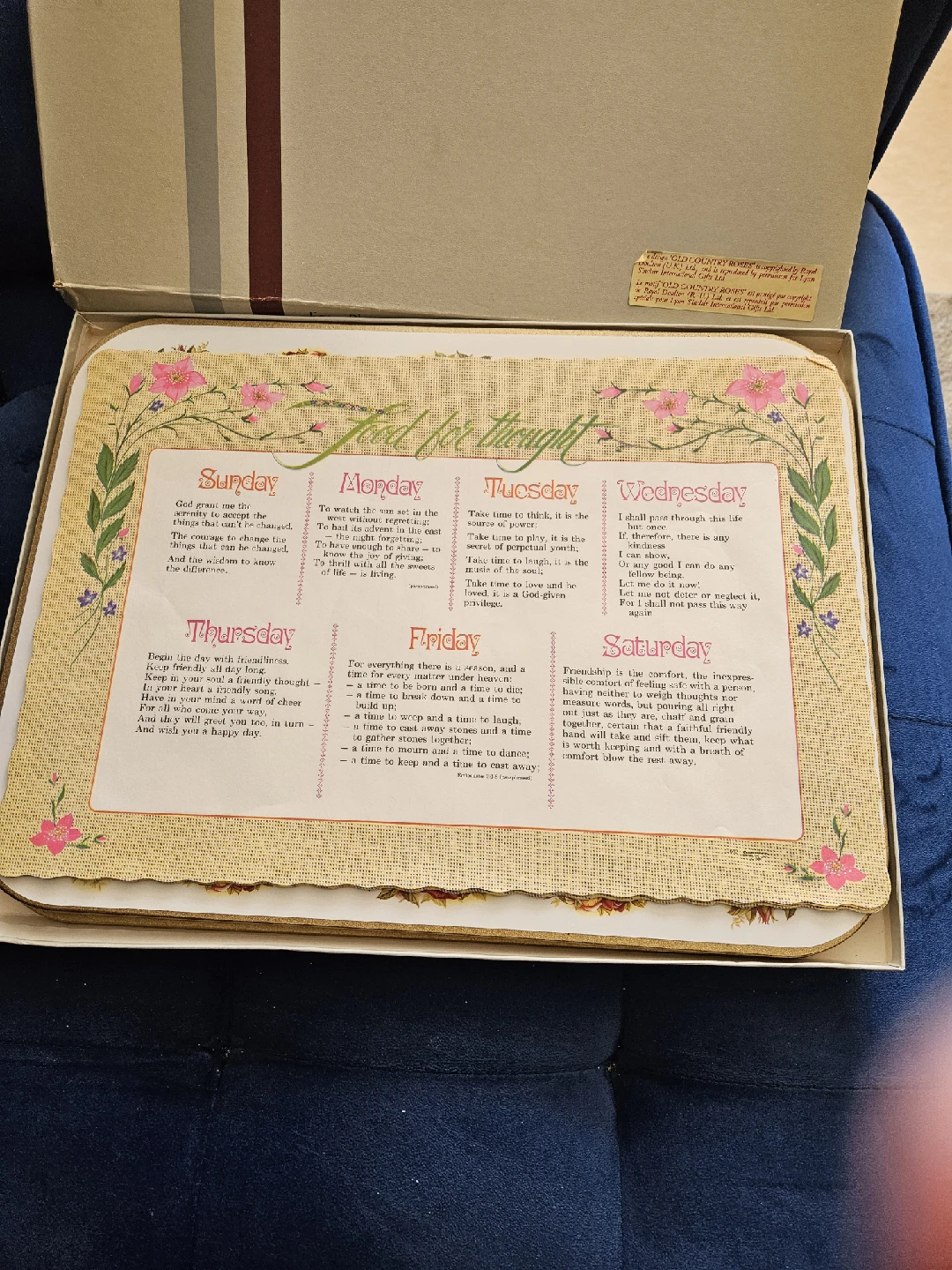 ***Bonus*** 13 paper placemats with inspirational sayings.