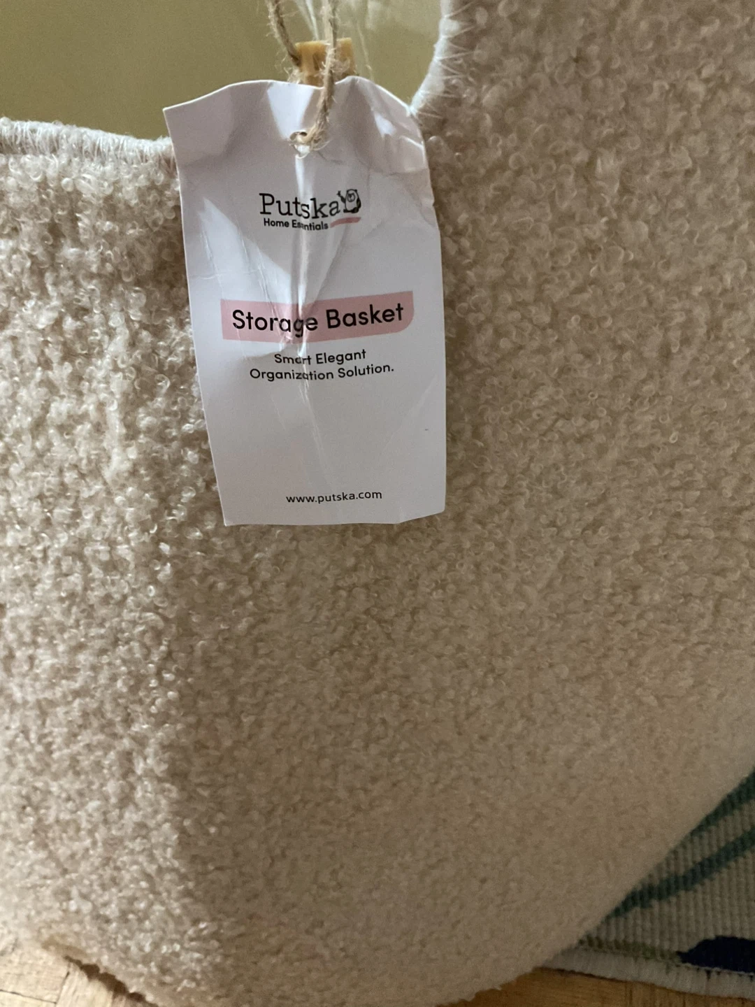 1000+This storage basket from Putska Home Essentials is a smart and elegant organization solution! It's made with cotton and polyester and is in great condition. The care instructions are to spot or wipe clean with a damp cloth