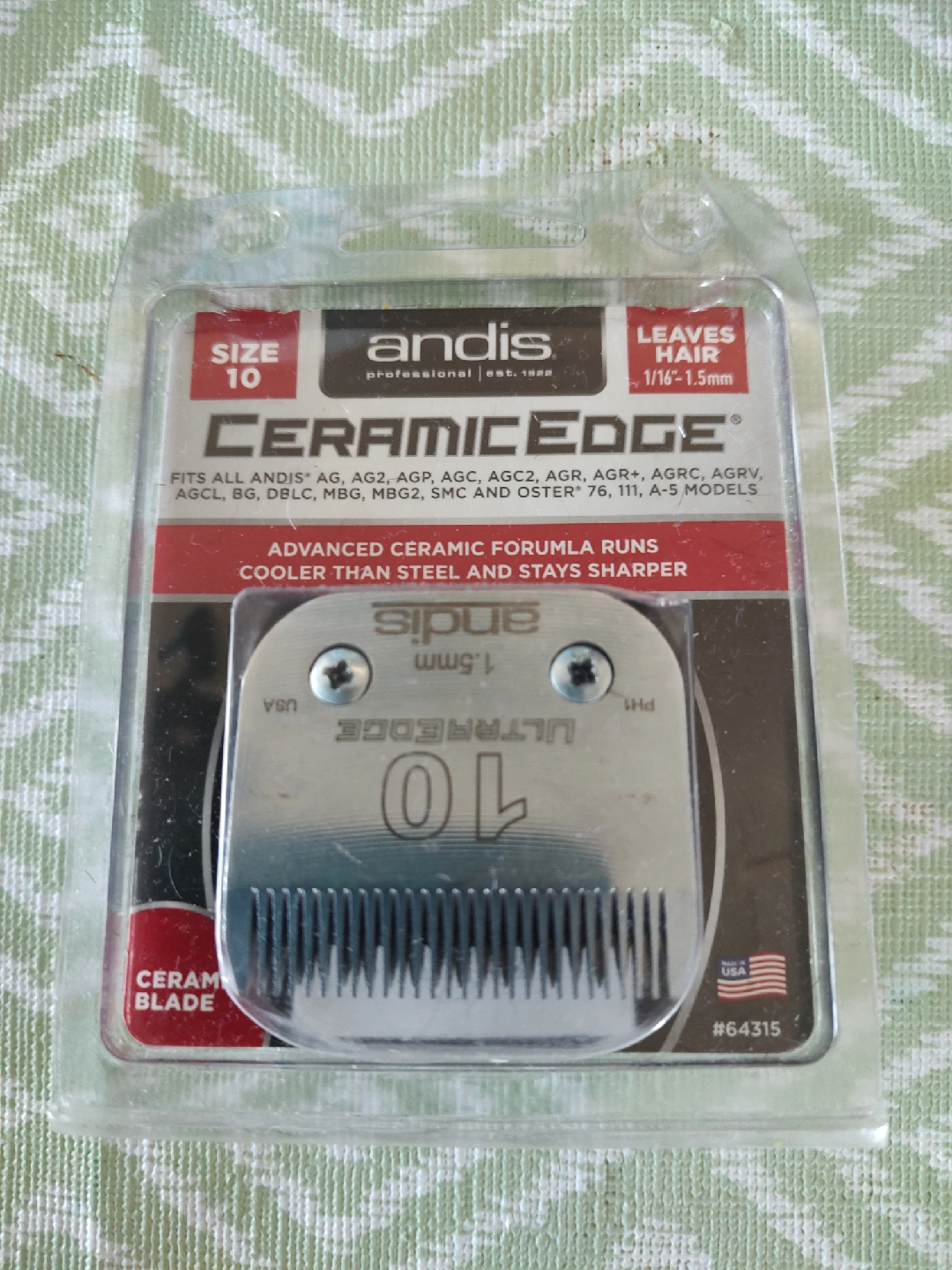 Selling a brand new Andis CeramicEdge blade, size 10! This blade is designed to fit Andis AG, AG2, AGP, AGC, AGC2, AGR, AGR+, AGRC, AGRV, AGCL, BG, DBLC, MBG, MBG2, SMC, and Oster 76, 111, A-5 models. The advanced ceramic formula runs cooler than steel and stays sharper longer, ensuring a smooth and efficient cutting experience
