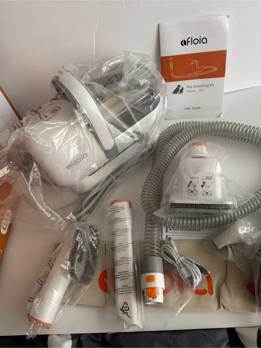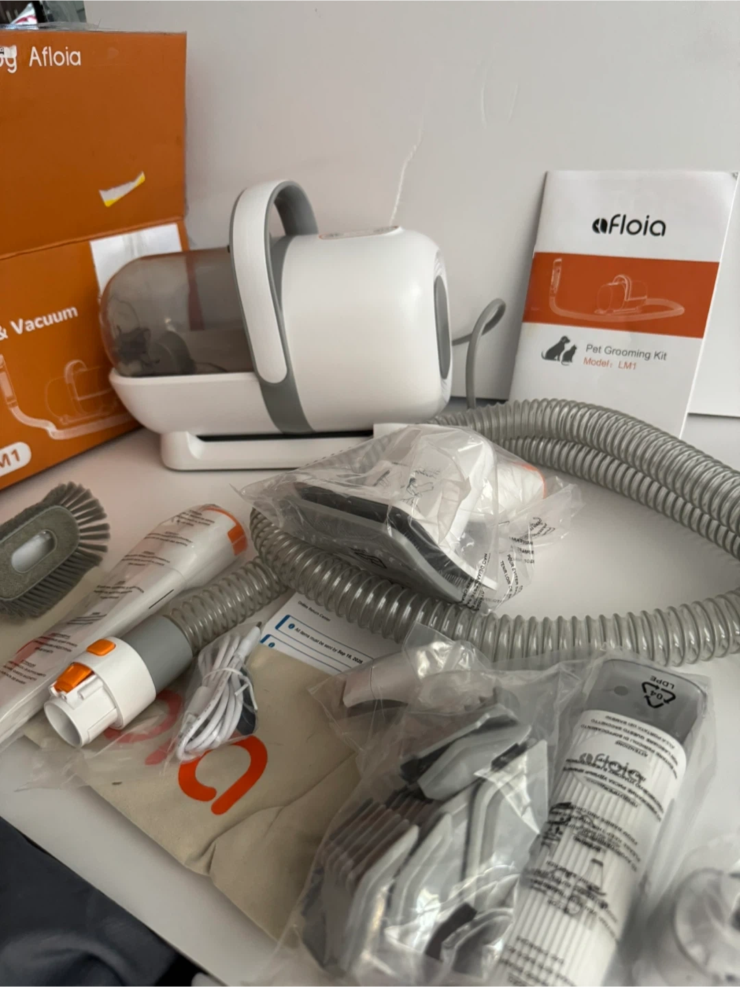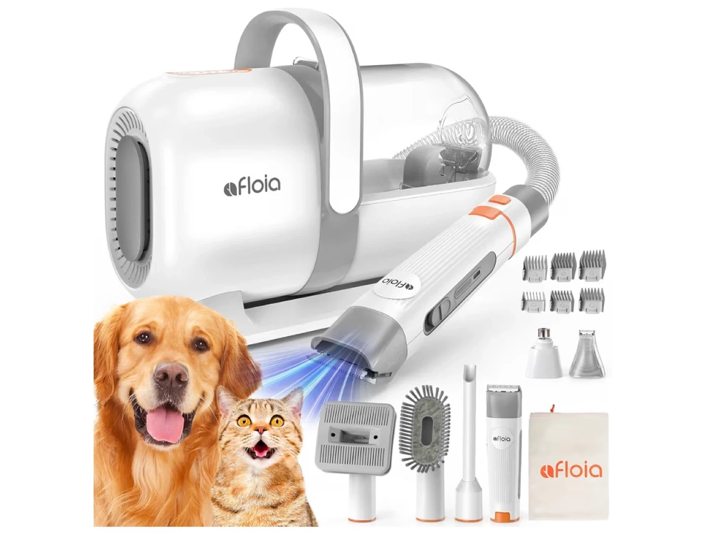 90Afloia Dog Grooming Kit, Pet Grooming Vacuum & Dog Clippers Nail Trimmer Grinder & Dogs Brush for Shedding with 6 Pets Groom Tools, Low Noise Dogs Hair Remover Pets Supplies (White)