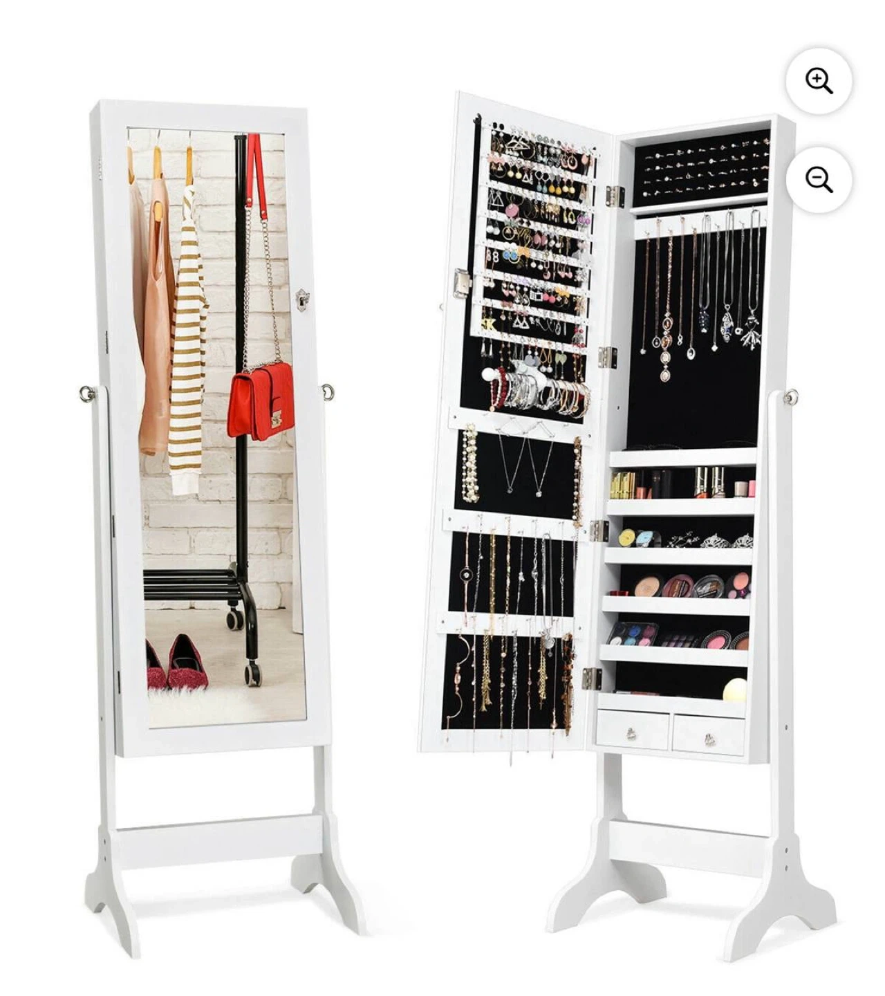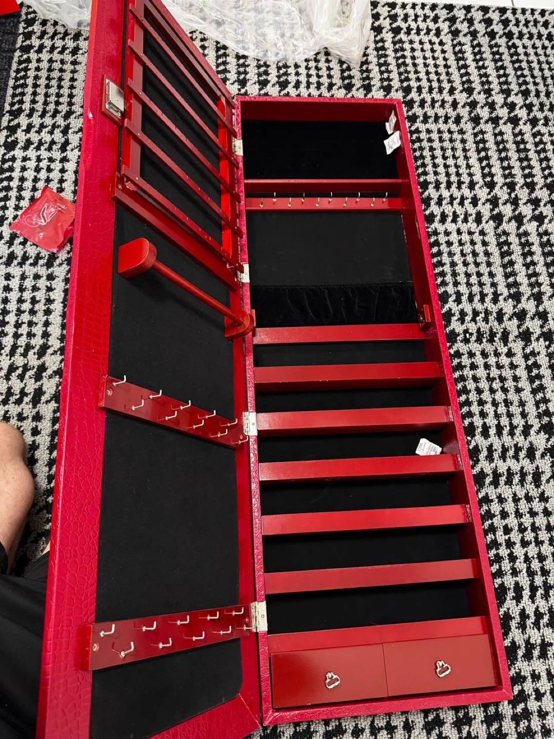 25π Red Croc Leather Jewelry Cabinet w/ Mirror β Open Box β¨ Elegant full-length mirror cabinet for jewelry, accessories, and cosmetics. Wrapped in deep red faux crocodile leather, giving it a premium and luxurious look. Solid and heavy build β feels high-end and durable, not cheap plastic. πΉ Features: β’ Full-size mirror front β’ Lockable door with ornate vintage-style key ποΈ β’ Multiple hooks, shelves & drawers for jewelry and makeup β’ Black velvet interior lining β’ Freestanding design with stable base π Dimensions: β’ Cabinet height: ~46 in β’ Total height with stand: ~56β58 in β’ Width: ~15 in β’ Depth: ~4 in π¦ Condition: Open Box β Never Used π° Price: $220CAD π Pickup in Waterloo π Delivery available for an extra fee π See my other listings
