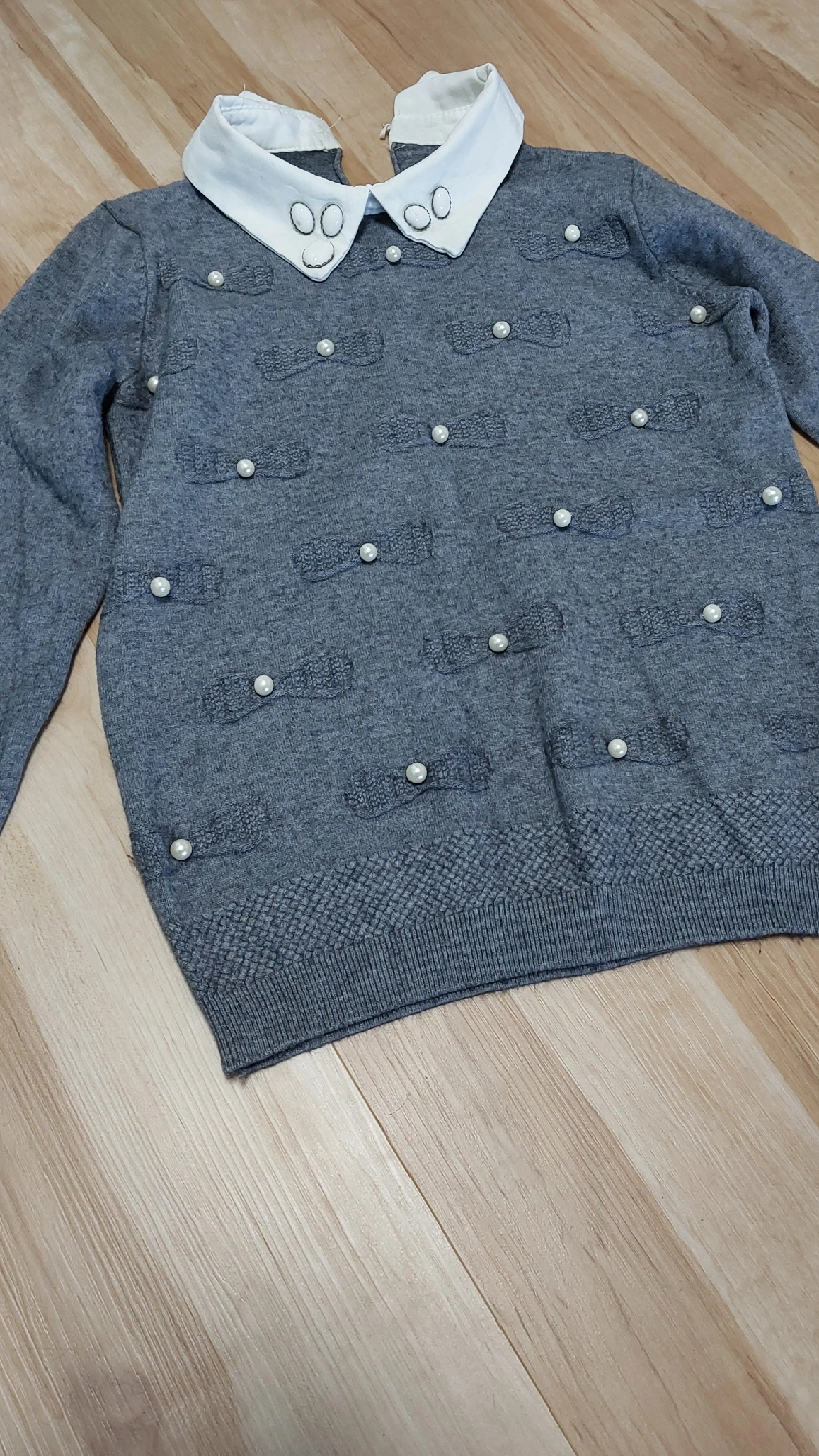 BRAND NEW Grey Sweater with pearls and White Collar Xs to S size