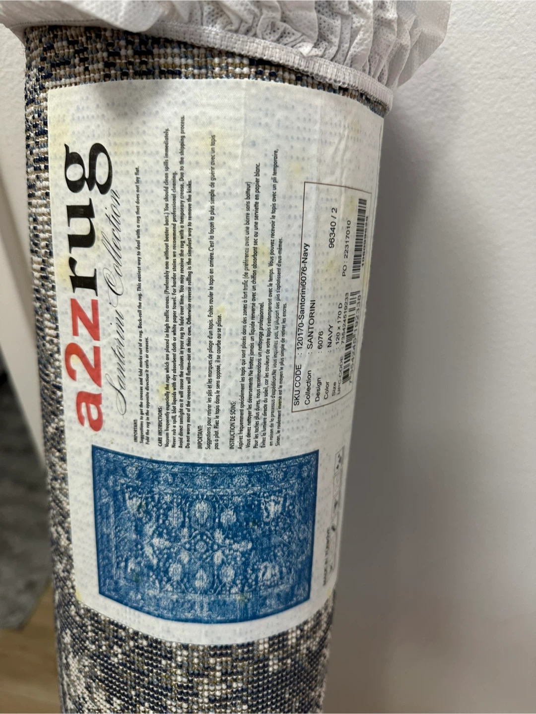 324Selling a brand new a2zrug from the Santorini Collection! This rug is navy and measures 120 x 170 cm. It's still in its original packaging and ready to add a touch of elegance to your home