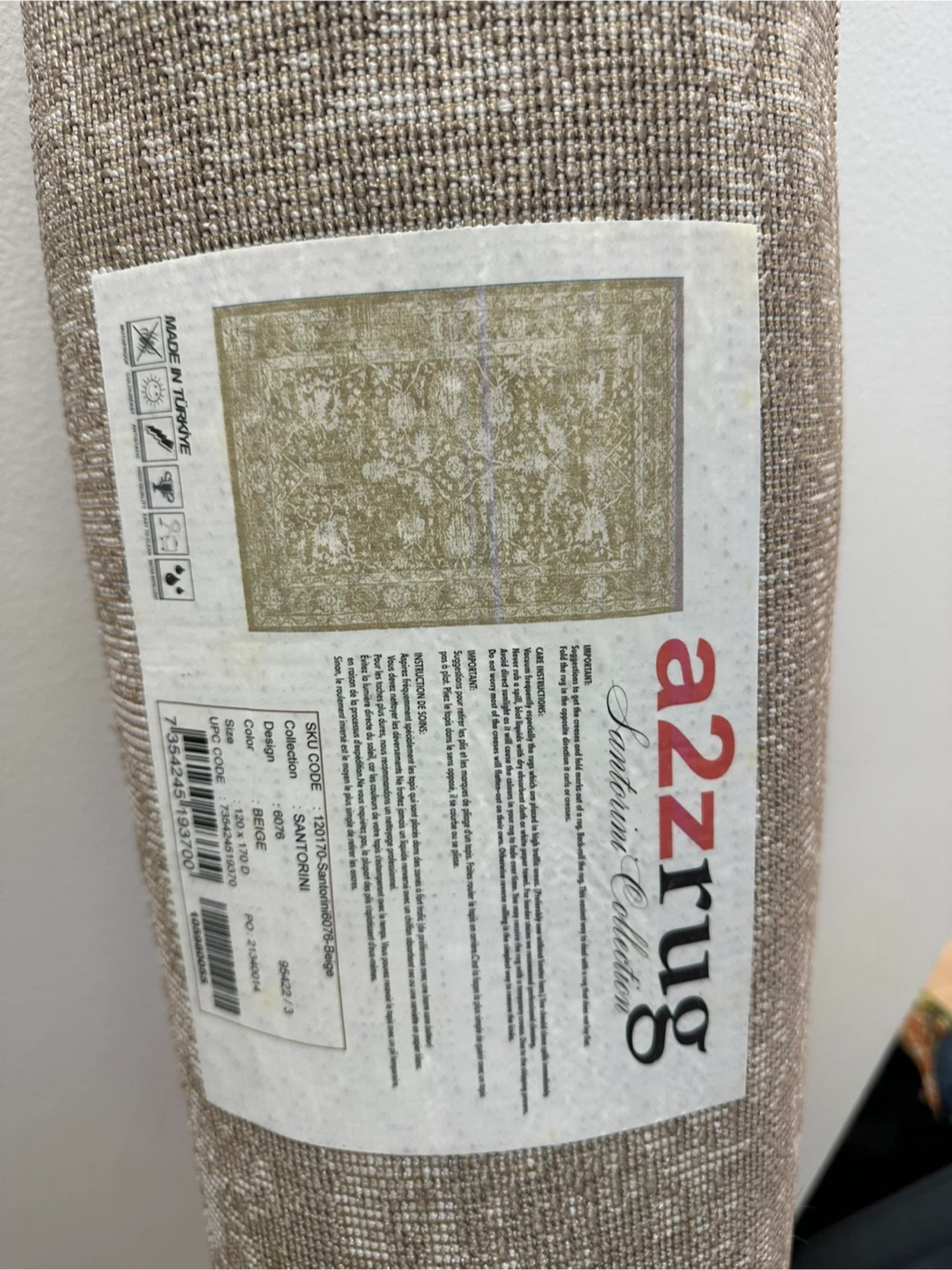 Selling a rolled a2zrug from the Santorini Collection! It's beige and measures 130 x 170 cm. The SKU code is 130170FS-Santorini0076-Beige. Perfect for adding a touch of elegance to any room