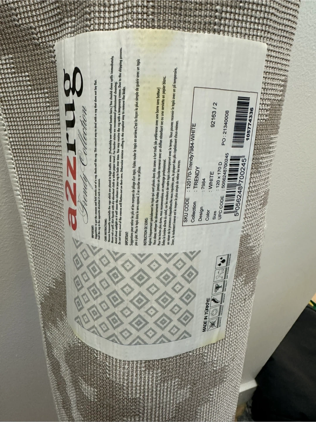 Selling an Azzrug rug from the Trendy Collection! It's white with a stylish design. The size is 170 x 120 cm. Perfect for adding a touch of modern flair to any room