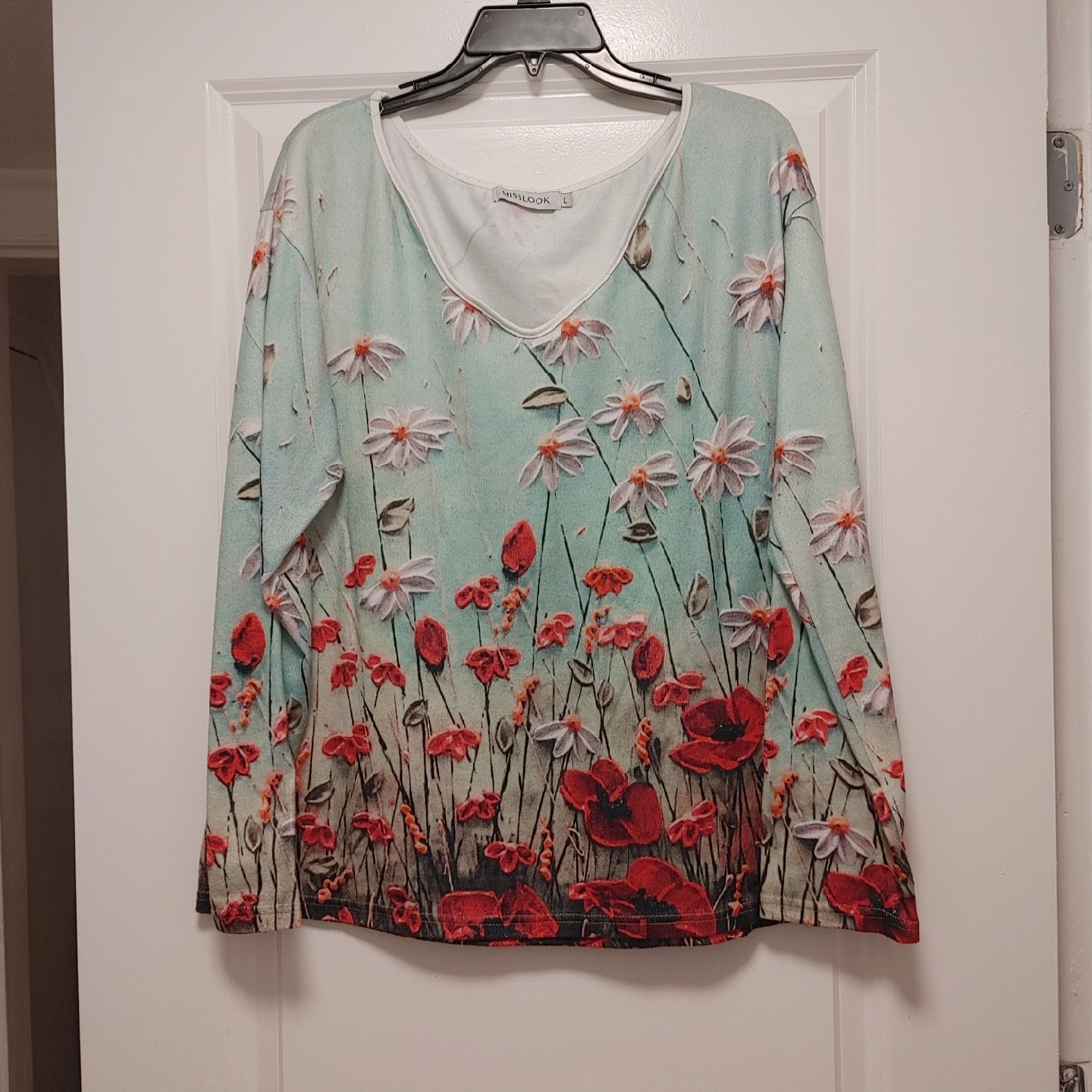 63This is a lovely Misslook long sleeve top featuring a vibrant floral pattern. It's a size L and in great condition, perfect for adding a pop of colour to your wardrobe