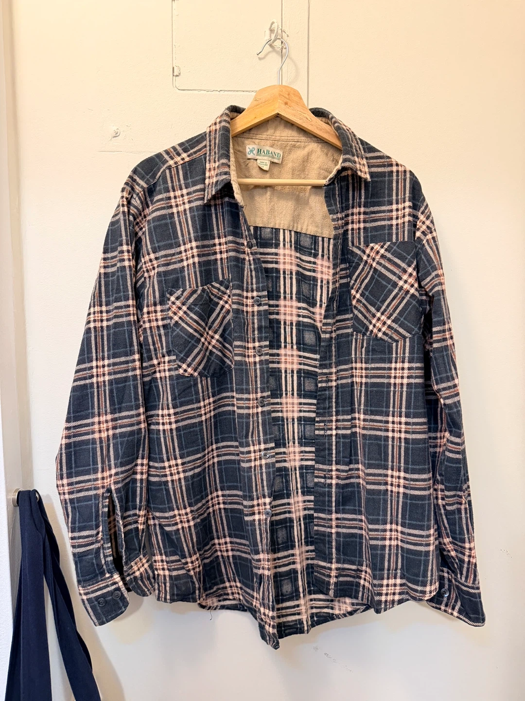Selling a HABAND flannel shirt in size M. The shirt features a classic plaid pattern and is made of a comfortable material. It's in good condition and ready for a new home!