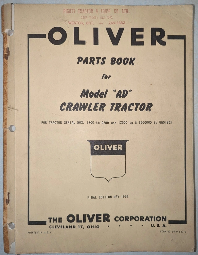 Buy & SellOliver AD Crawler Tractor Parts Catalog BookOliver AD Crawler Tractor Parts Catalog Book$10Original MAY1959 Dealers final edition Manual no. S6-9-120-E. Call or text 705-440-91590 chats·0 favorites·0 viewsSELLERMichaelBeeton252 reviewsWHERE TO MEETCheck Location