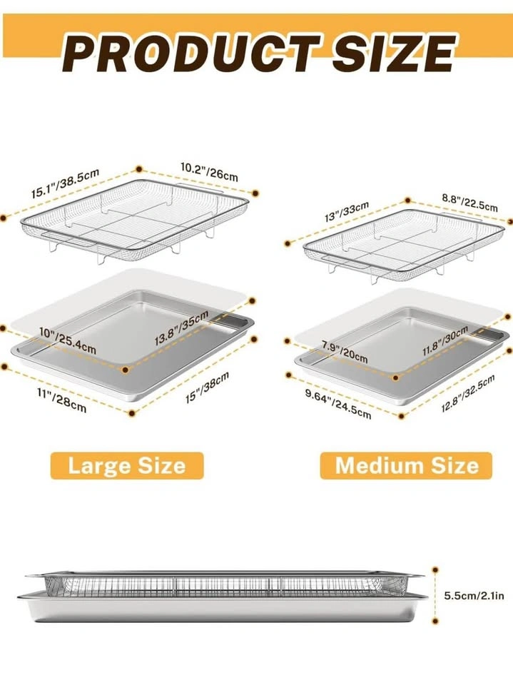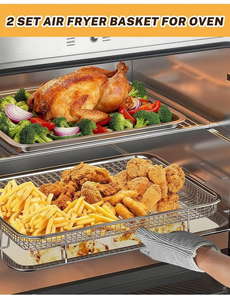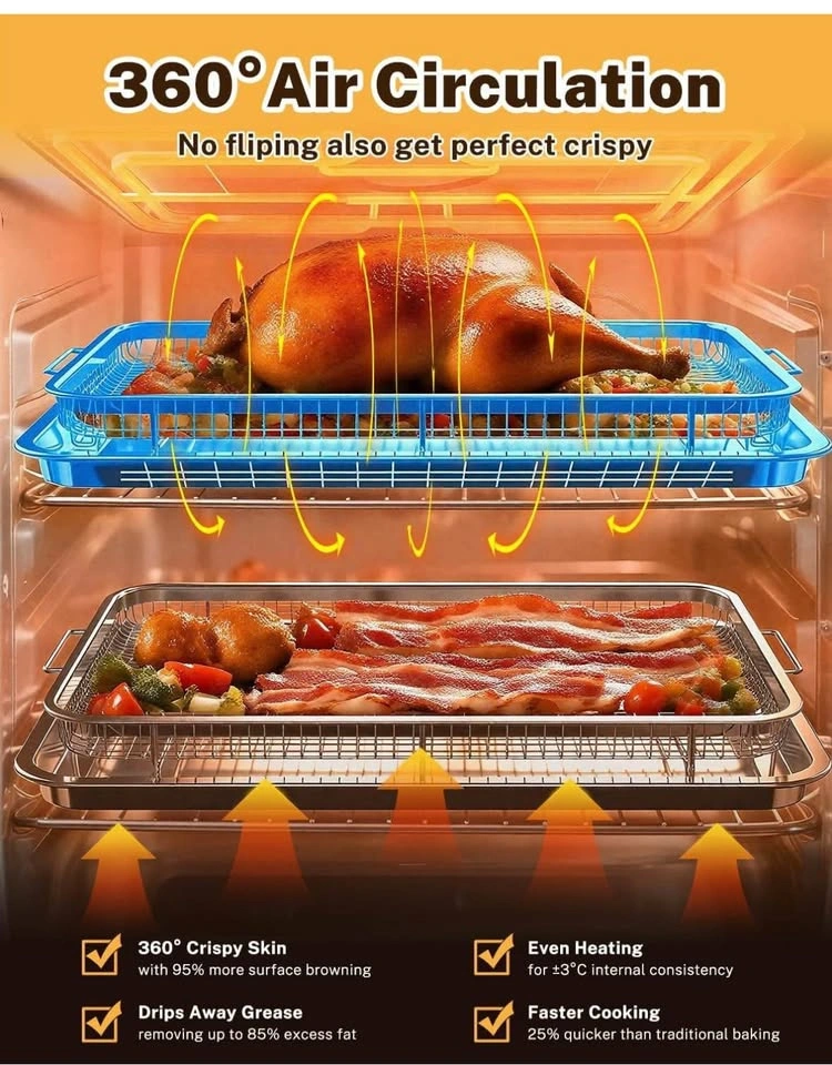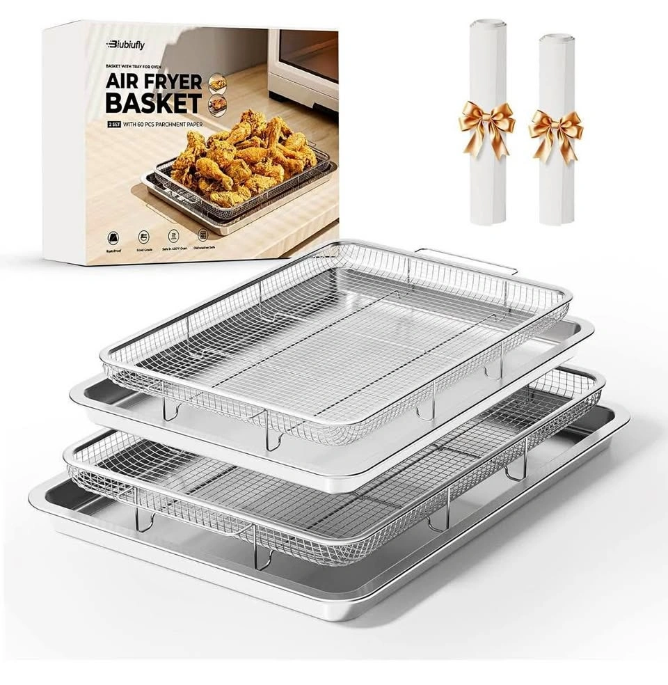60The air fryer tray set is not just ideal for air frying, baking and roasting, but also for cooking en papillote, to help you make crispy french fries, hash browns, roasting vegetables, juicy steaks and much more. Whether you're feeding a family or entertaining guests, it will handle it all.