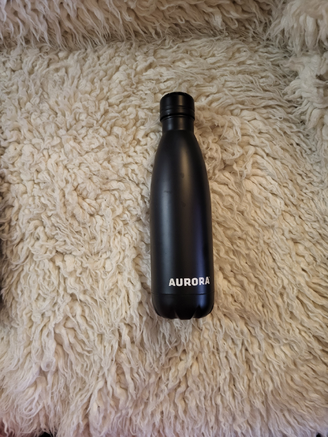 Selling a black water bottle from Aurora. It's in great condition and ready for a new home! Perfect for staying hydrated on the go