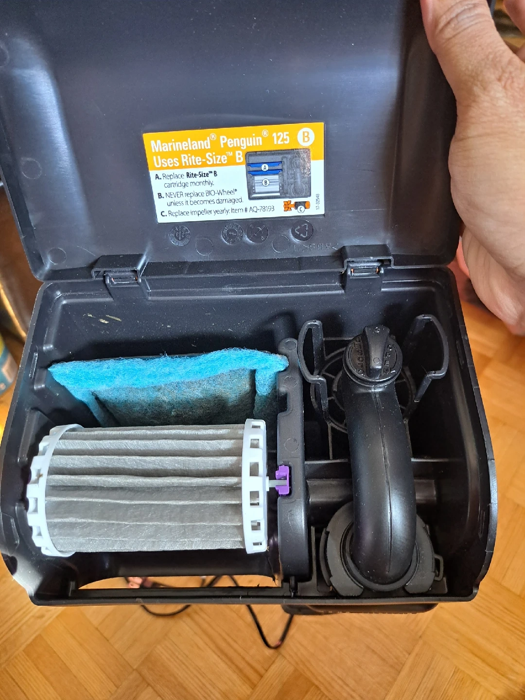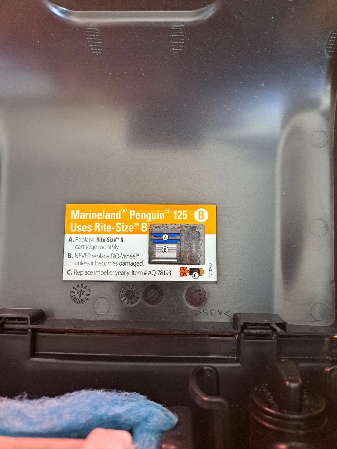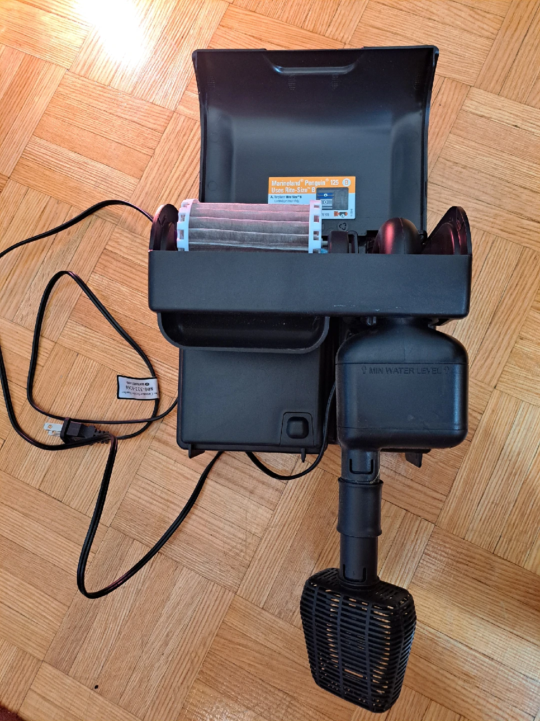 Selling a Marineland Penguin 125 Power Filter! It uses Rite-Size B cartridges. Remember to replace the Rite-Size B cartridge monthly! Also, replace the impeller yearly with item # AQ-78193