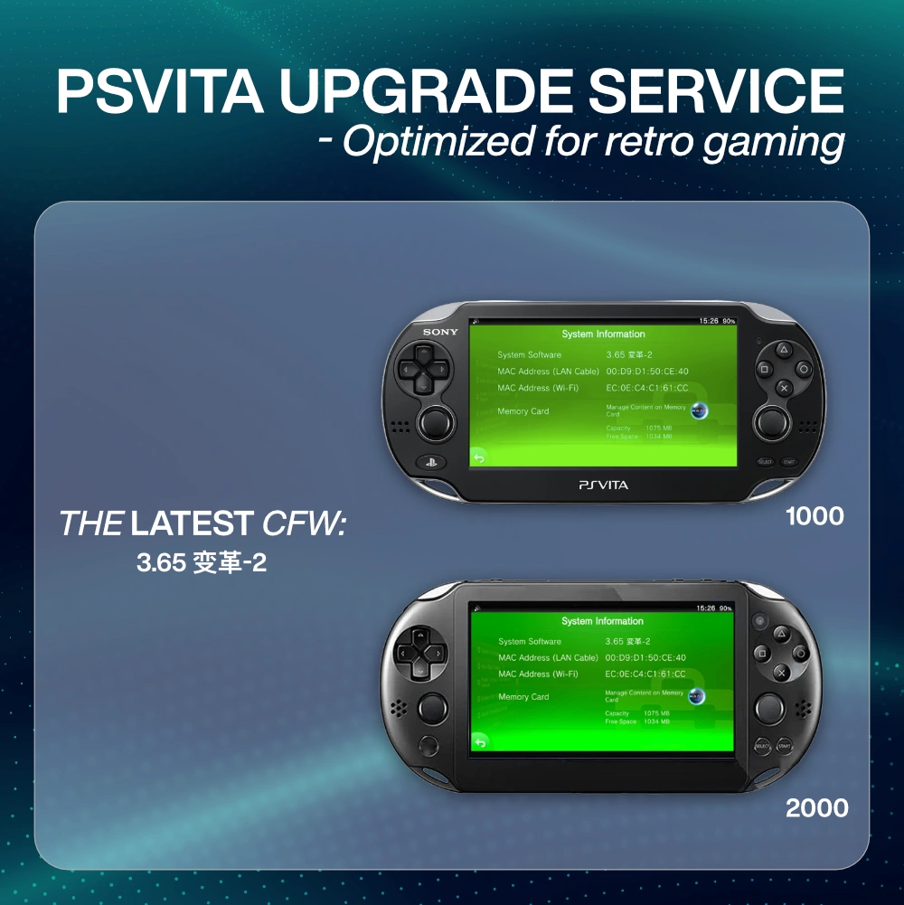 Get your classic PSVita fully set up and ready to play! I offer a complete system upgrade using the latest custom software โ smooth menus, faster boot time, and a full collection of retro games as a bonus gift with every memory card.