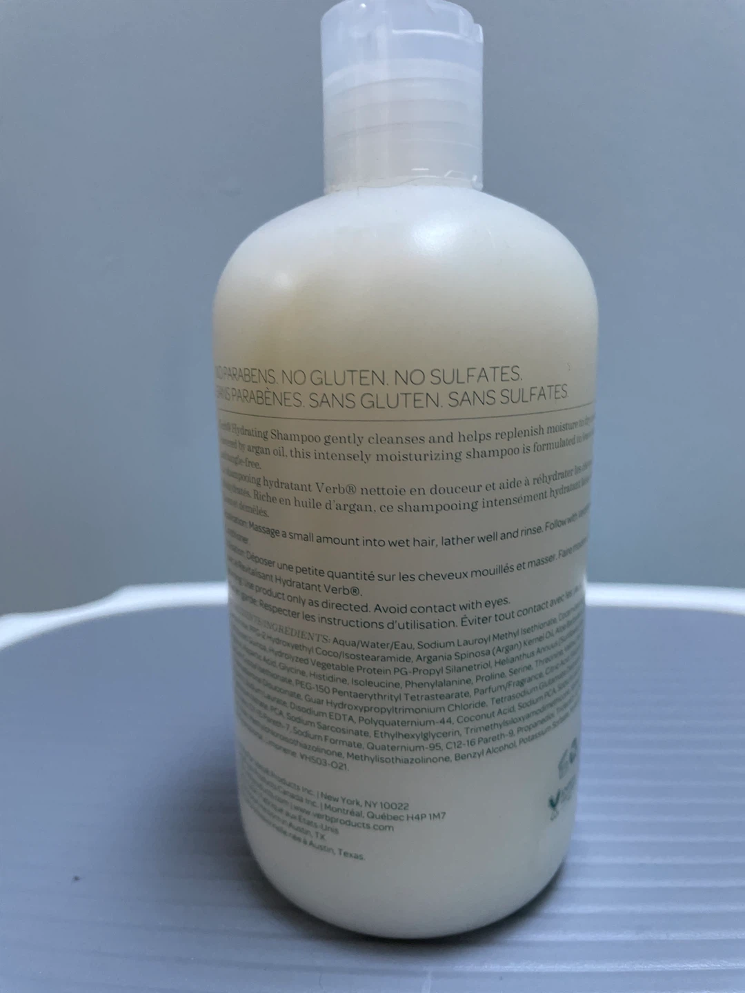 Selling a bottle of Verb Hydrating Shampoo. It's a mild and colour-safe shampoo that gently cleanses and helps replenish moisture. The bottle contains 12 fl oz / 355 ml.