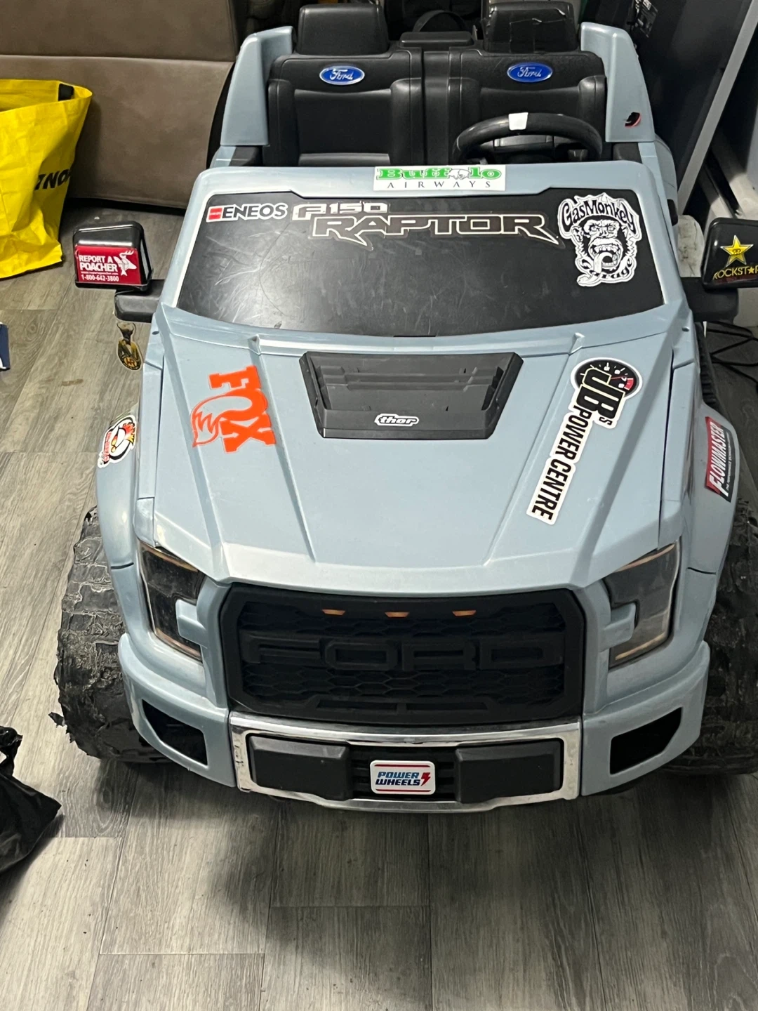 Get ready for some off-road fun with this used Ford Raptor ride-on truck! This awesome little truck is perfect for kids who love adventure, featuring rugged styling and realistic details. This toy has signs of wear but is still super fun to play with.