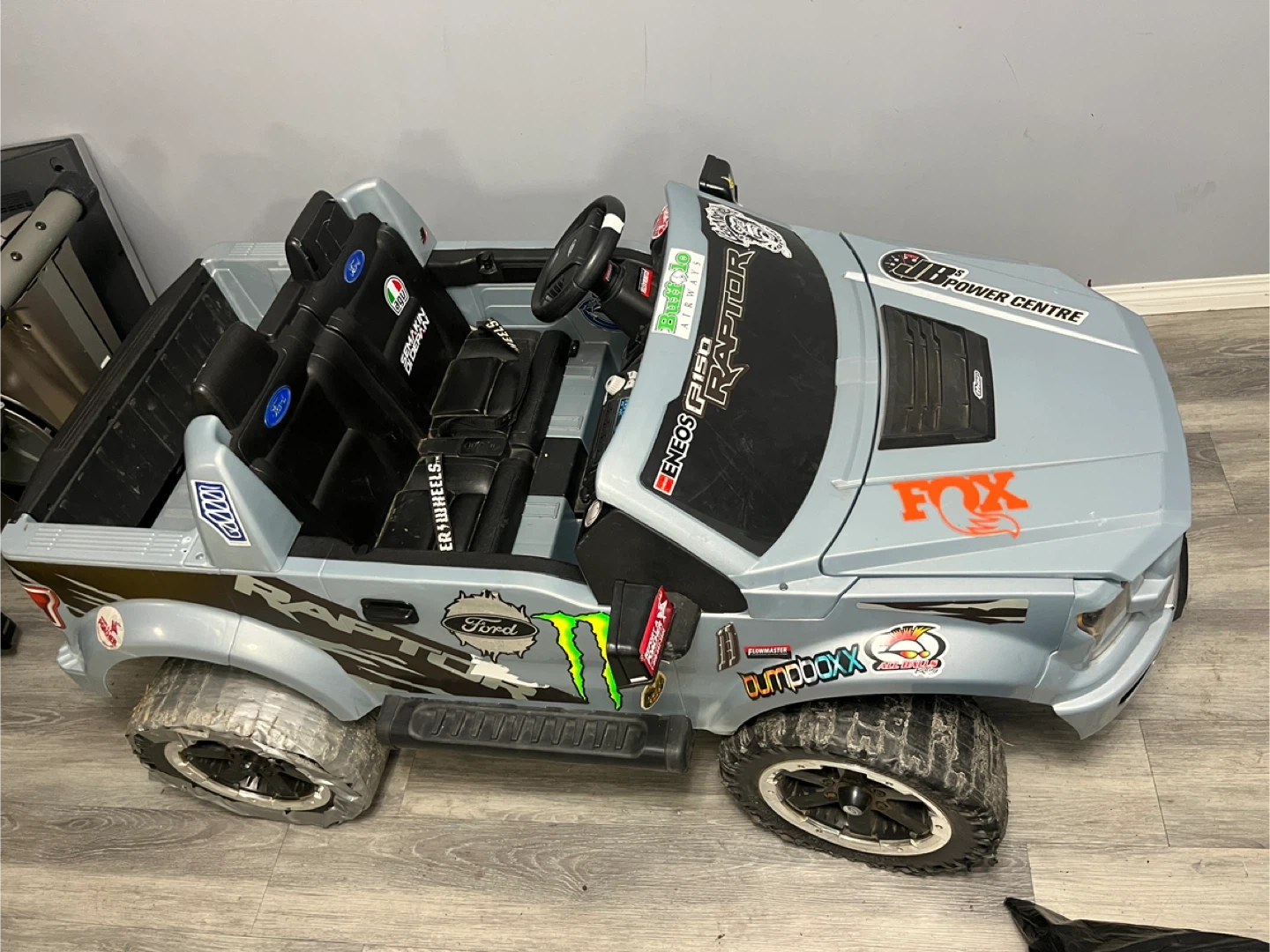 Imagine the awesome adventures your little one can have with this Ford Raptor! Don't miss out—grab it before it's gone! And remember, if the ad's up, it's available! And it also has a littler stereo system that displays a couple of noises/sound and music