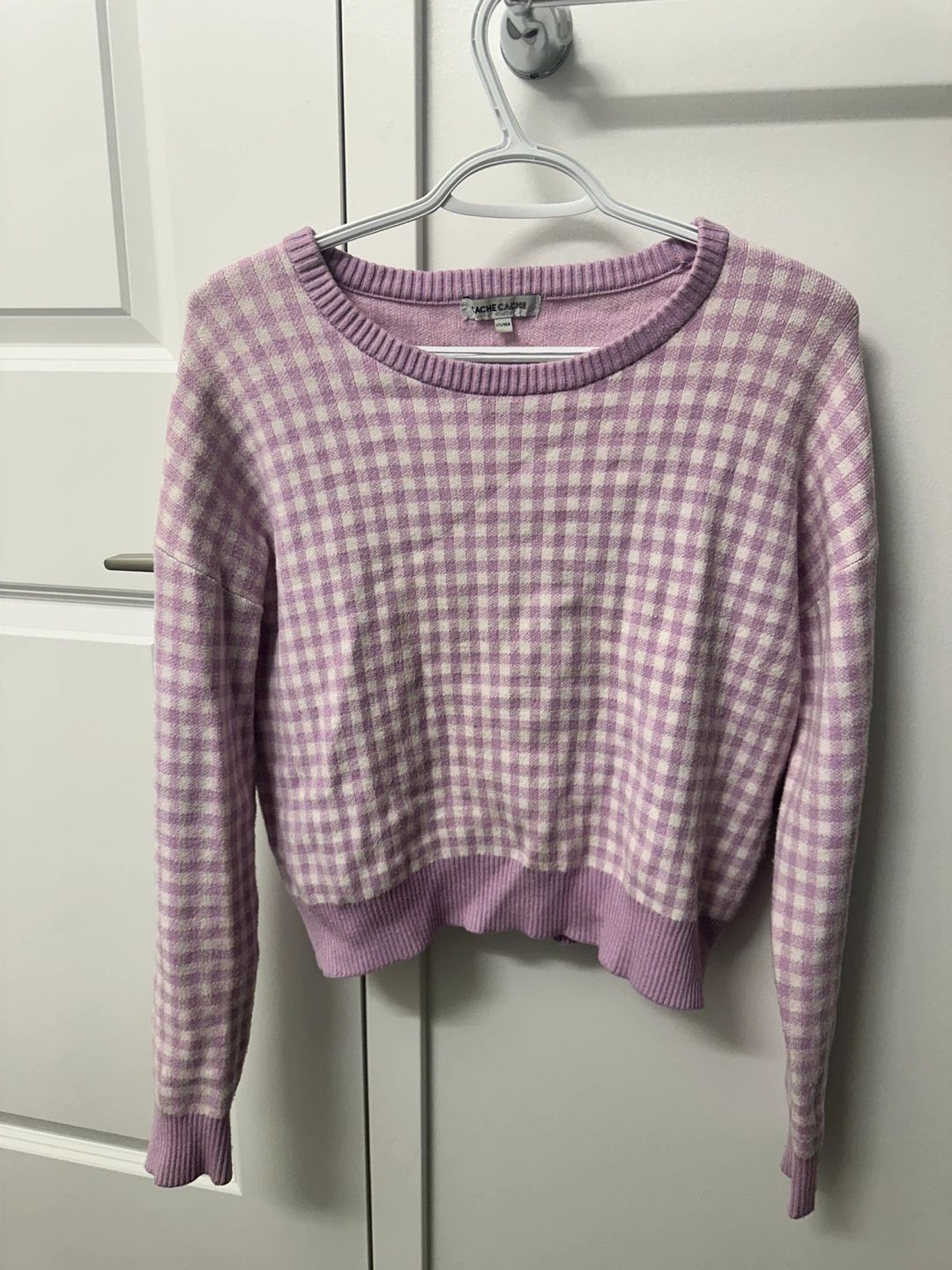 Selling a cute Aerie gingham sweater! It's a size medium and in great condition. The sweater features a lovely lavender and white gingham pattern. Perfect for layering or wearing on its own