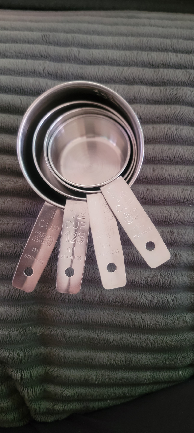 1 / 11 / 1Buy & SellStainless Steel Measuring Cups - Set of 4Stainless Steel Measuring Cups - Set of 4$4Set of four stainless steel measuring cups. Includes 1 cup (250 ml), 1/2 cup (125 ml), 1/3 cup (80 ml), and 1/4 cup (60 ml). Great for any kitchen!ConditionGoodWHERE TO MEETPort CreditView MapSELLERverifiedKayleighPort Credit1325 reviews0 chats·1 favorites·37 viewsSEND CHAT TO SELLERHi Kayleigh! I’m interested in your listing.Hi Kayleigh! I’m interested in your listing.Get the Karrot app to chatSign In to chat