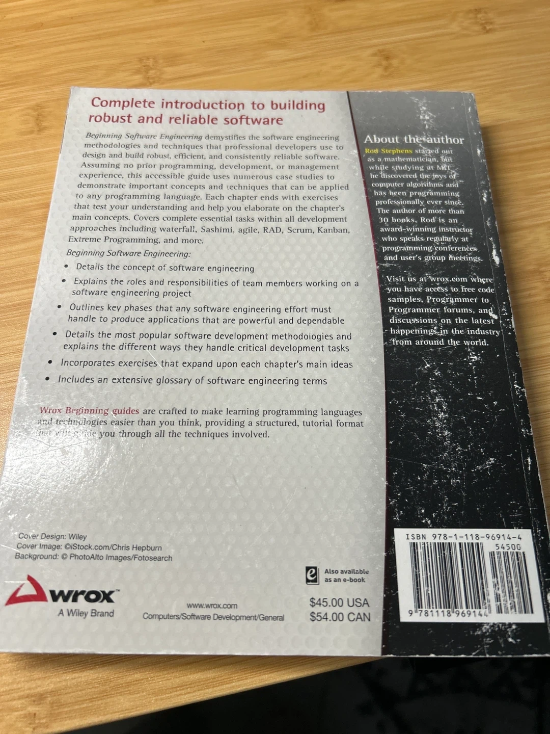 223Selling a copy of Beginning Software Engineering by Rod Stephens! This book is a great resource for understanding software development methodologies and techniques. It covers topics like agile, Scrum, Kanban, and more. Perfect for anyone looking to build robust and reliable software projects
