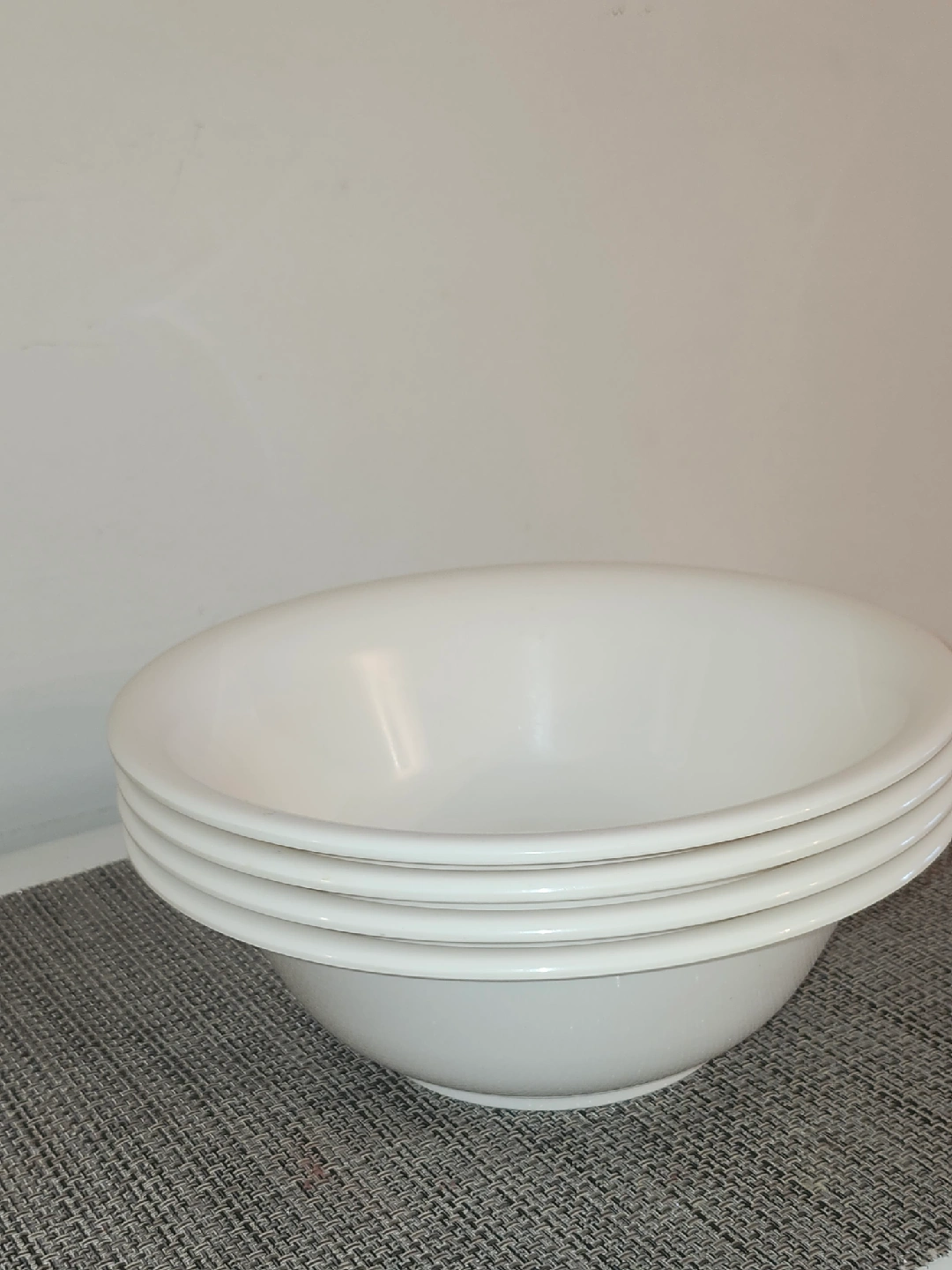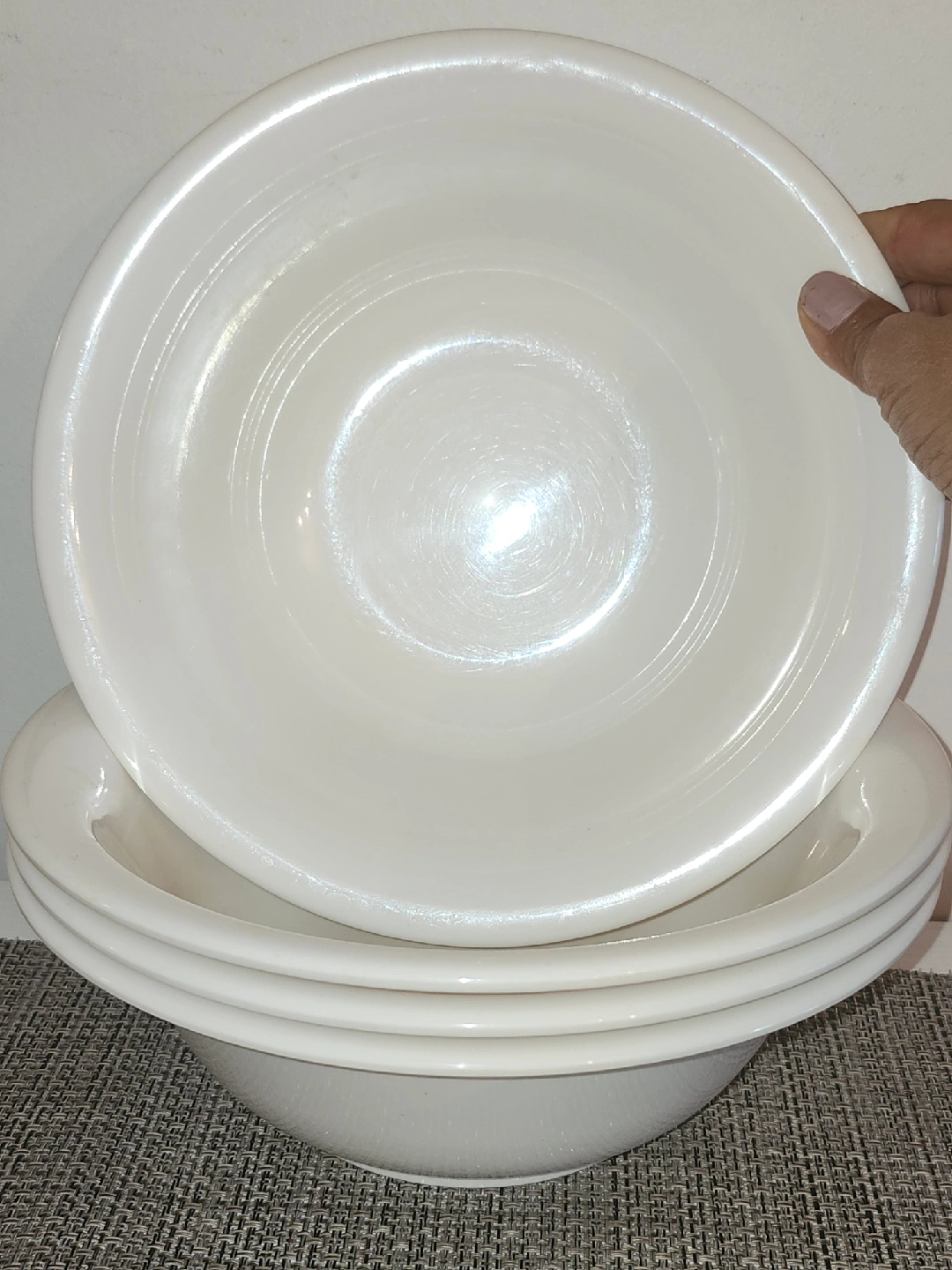 316Selling a set of four white bowls. They are in great condition and measure approximately 9-10 inches in diameter. Perfect for everyday use!