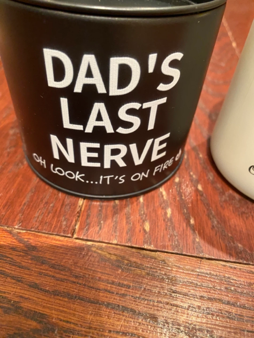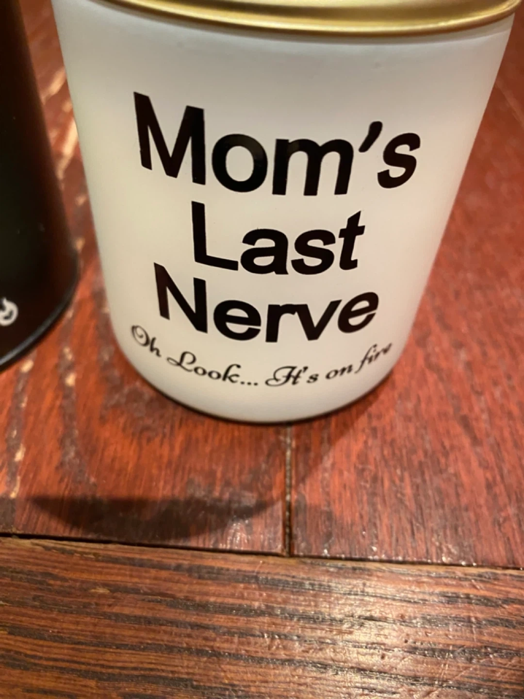 496Two candles for sale! One is "Mom's Last Nerve" and the other is "Dad's Last Nerve"! They both say "Oh look... It's on fire". These are natural mineral wax and pure essential oil scented candles. Delicate aroma! Brand New Exact Cash Only
