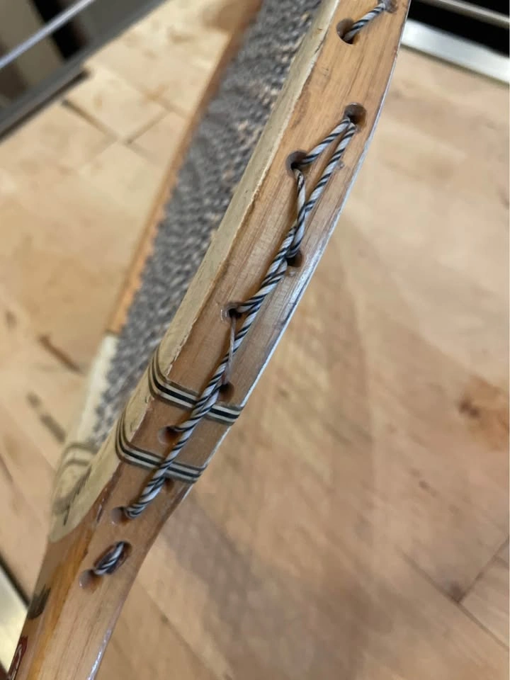 Features original wood frame, branded leather grip, and retro styling. The racquet shows normal age-related wear — strings are partly broken (see photos), but the frame is solid and makes an excellent collector’s item, display piece, or decor for a sports room, bar, or cabin.